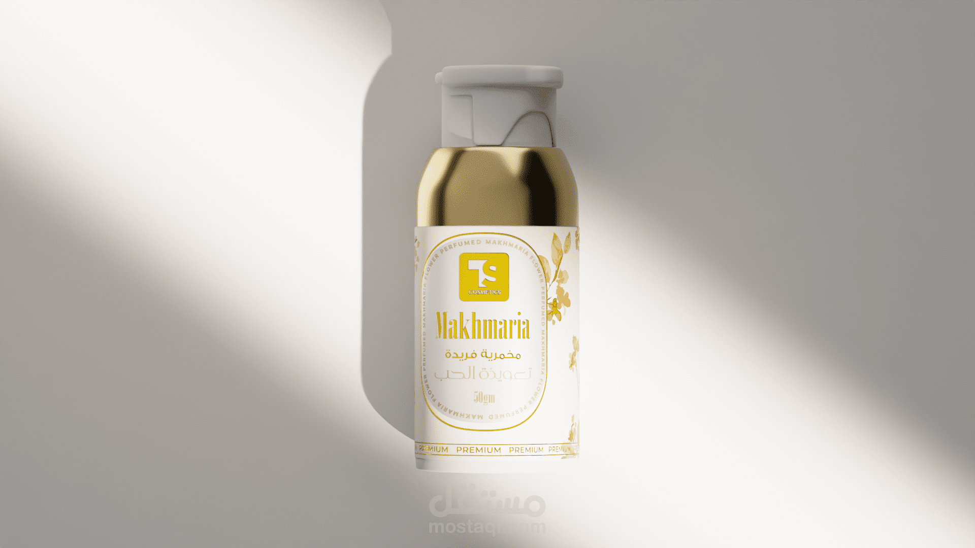 تصميم ثلاثي الأبعاد واقعي لعلبة منتجات عطور (مخمريّة) باستخدام برنامج Blender، مع التركيز على التفاصيل الجمالية في الإضاءة، الظلال، والخامات لإبراز المنتج بشكل فاخر وجاذب للنظر.