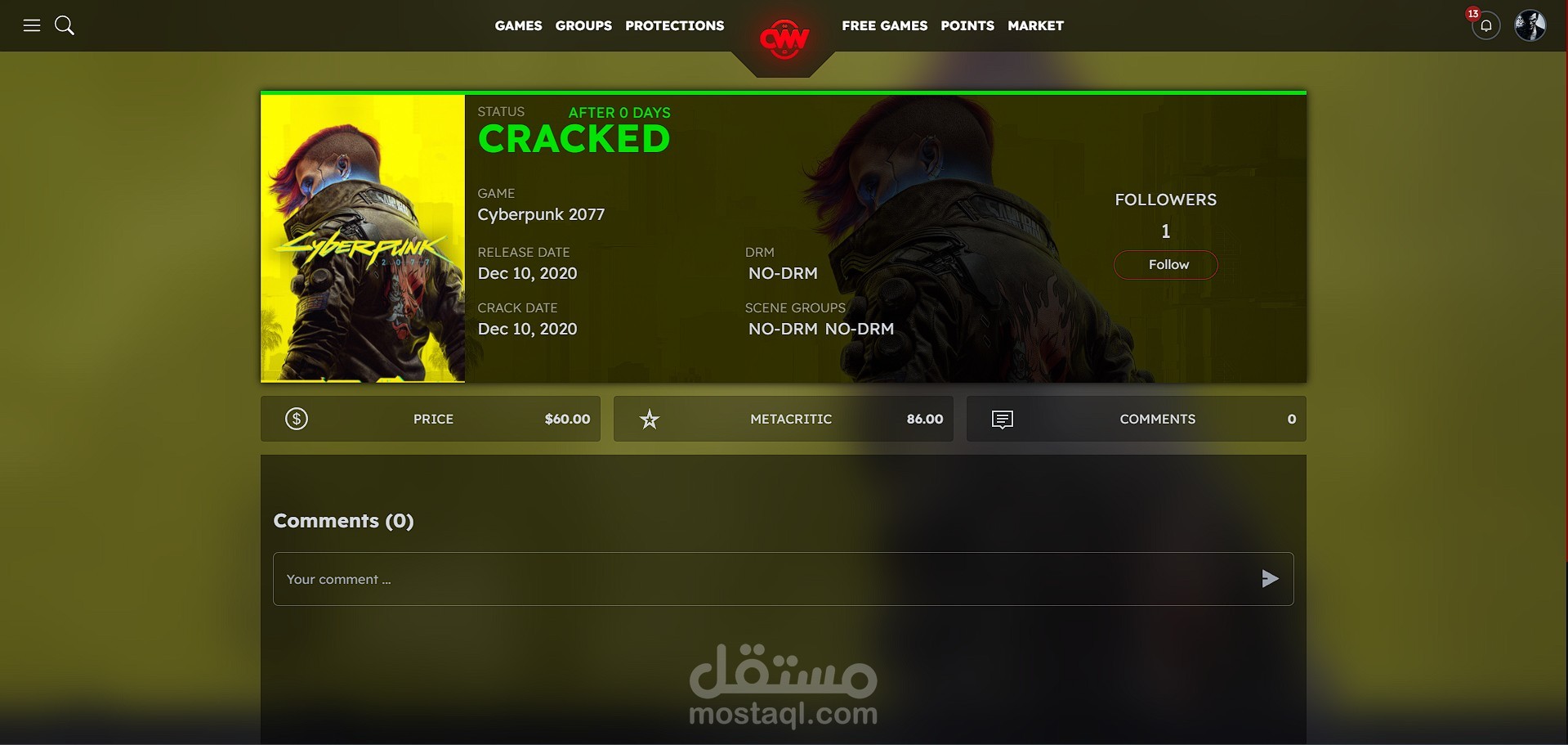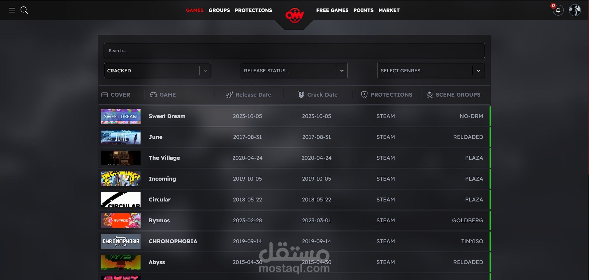 موقع لتتبع الألعاب يعرض حالة كسر الحماية (Crack Status) لكل لعبة، مع العديد من المميزات مثل تسجيل المستخدمين، الإشعارات، وتتبع الألعاب.