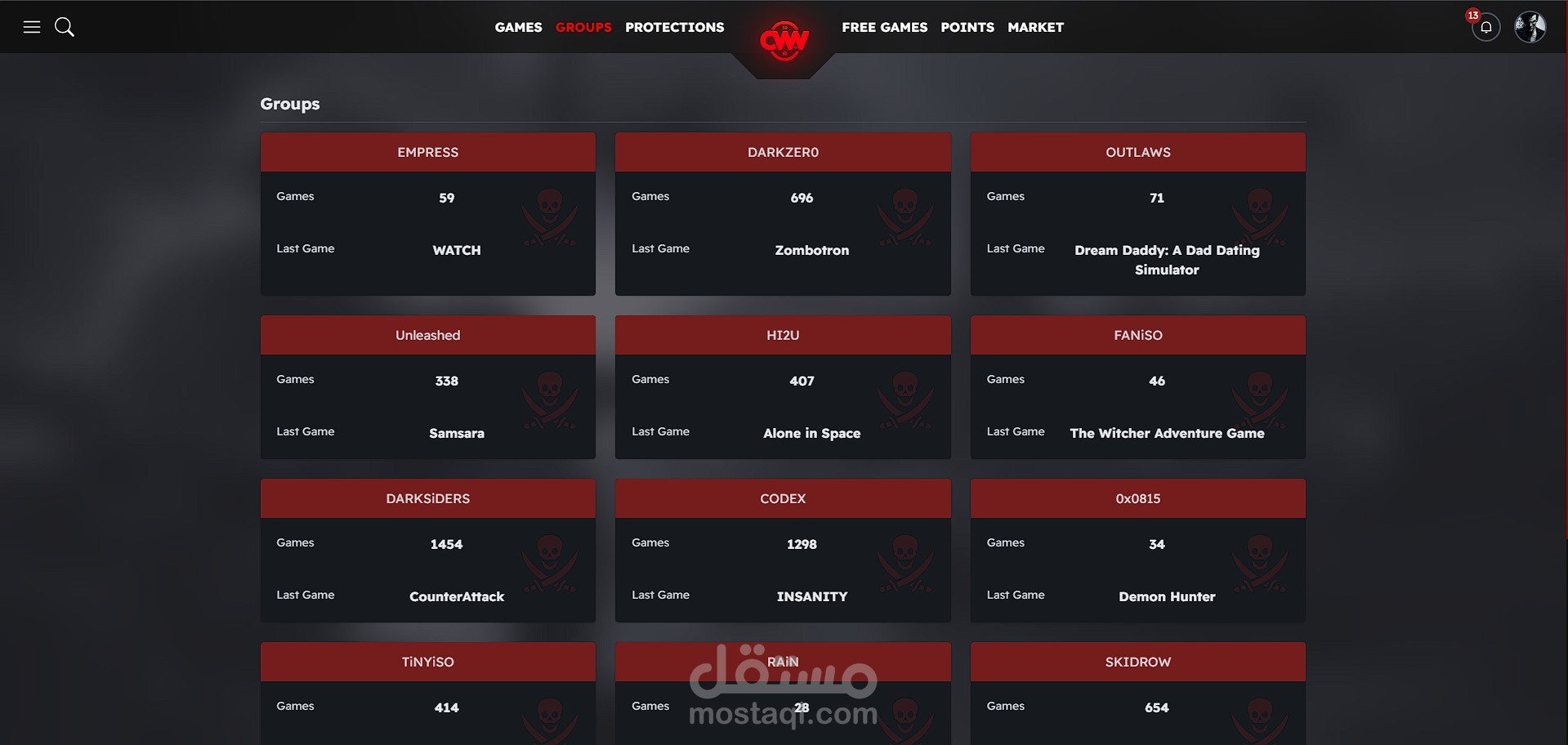 - صفحات المجموعات وفِرَق الحماية: عرض قوائم مجموعات الهاكرز وفِرَق الحماية (مثل Denuvo) مع الألعاب المرتبطة بها.