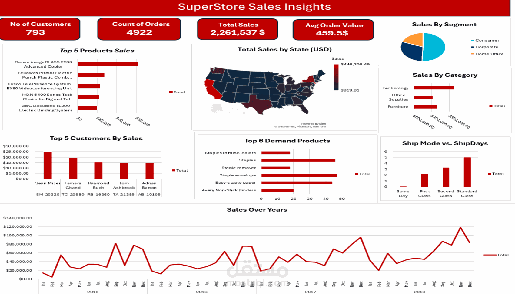 متوسط قيمة الطلب (Avg Order Value): 459.5 دولار