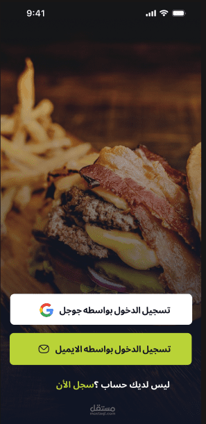 أزرار تسجيل الدخول باستخدام جوجل أو بريد إلكتروني وكلمة مرور.