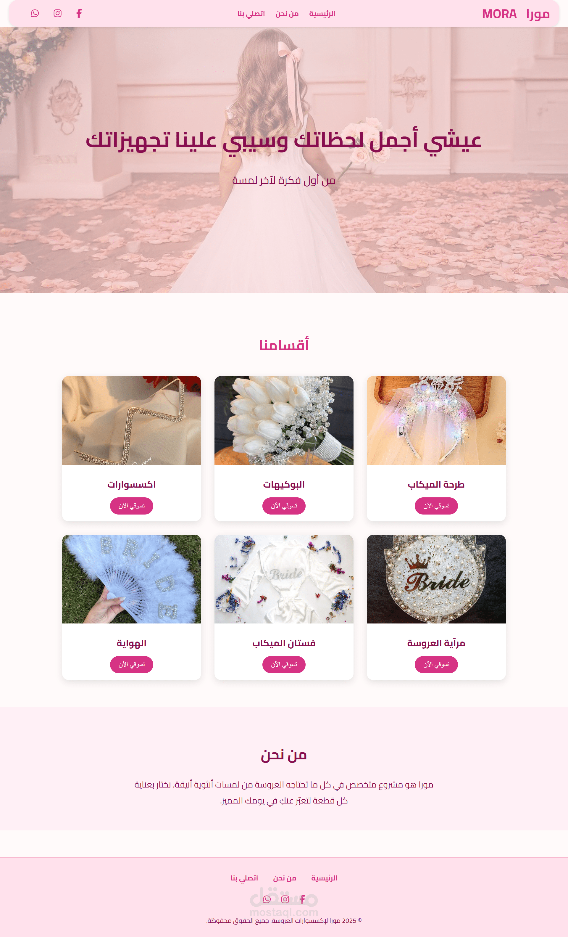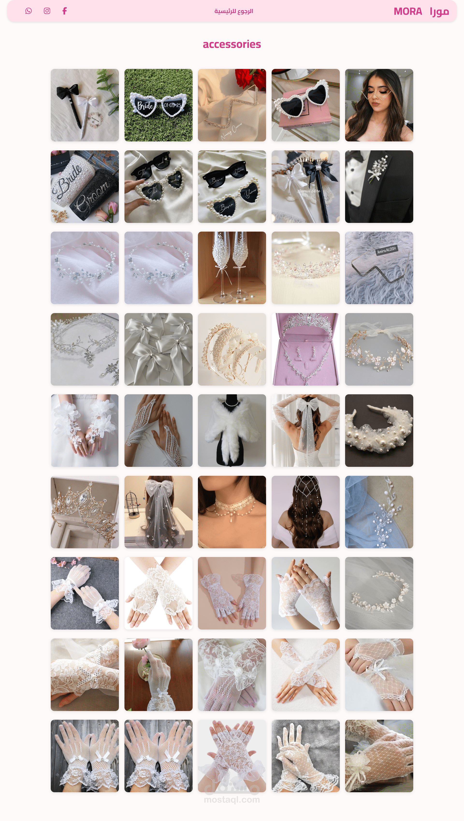 موقع تعريفي لمتجر اكسسوارت العروسة يشمل عرض جميع الاقسام ووسائل التواصل الاجتماعى وتعريف من نحن