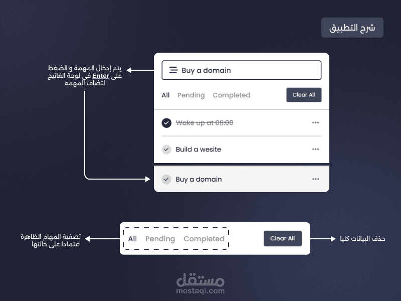 - بإمكان المستخدم: إضافة / تعديل / حذف المهام بسهولة