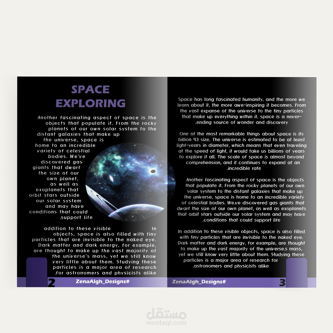 هل تخيّلت شكل مجلة عصرية عن "استكشاف الفضاء" بتنسيق بصري دقيق ومتوازن؟