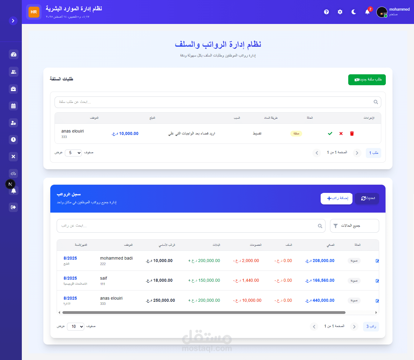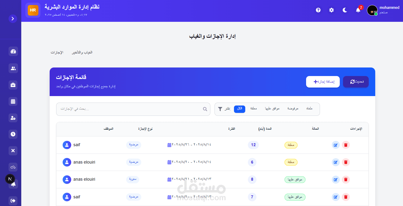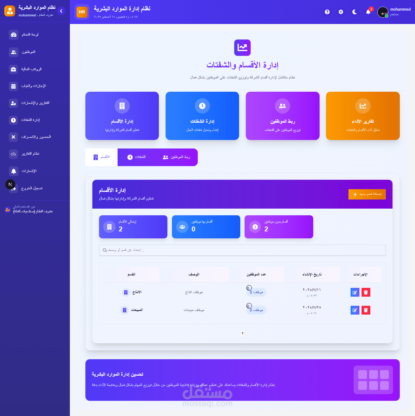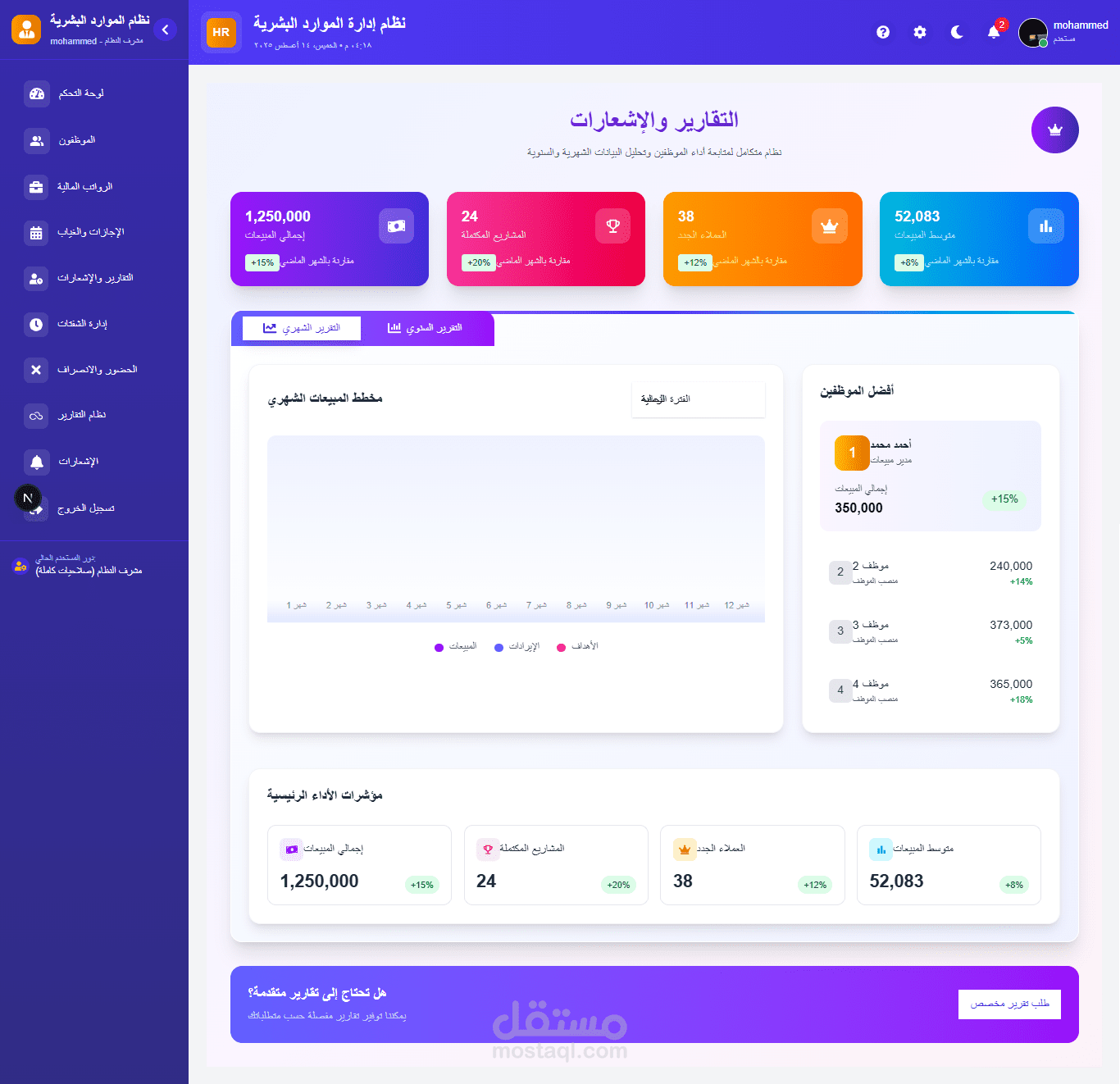 طوّرت نظامًا احترافيًا لإدارة الموارد البشرية يجمع بين القوة الدقة وسهولة الاستخدام يوفّر النظام إدارة شاملة لملفات الموظفين، الرواتب، الإجازات والحضور والانصراف