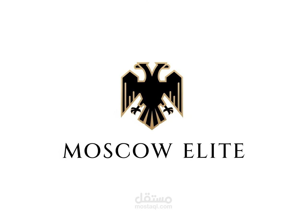 A sophisticated logo for Moscow Elite, a luxury brand targeting high-net-worth audiences (e.g., real estate, hospitality, or exclusive services). The centerpiece is a double-headed eagle emblem—a timeless symbol of power, heritage, and exclusivity—rendered in sleek black with gold accents, evoking opulence and authority. The clean, serif typography of “MOSCOW ELITE” complements the emblem, reinforcing elegance and timelessness. This design positions the brand as a leader in luxury, appealing to clients seeking prestige and uncompromising quality.