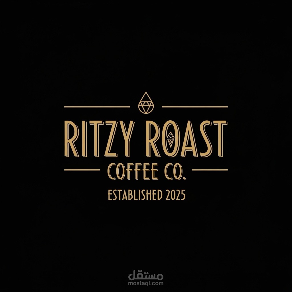 A sophisticated logo for Ritzy Roast Coffee Co., merging vintage art deco elegance with modern luxury. The design features bold, stylized gold typography against a sleek black background, accented by a geometric diamond emblem that evokes refinement and timelessness. The “ROAST” lettering includes a subtle coffee-related icon (hinting at the brand’s core product), while the “ESTABLISHED 2025” tagline adds a touch of exclusivity. This logo positions Ritzy Roast as a premium coffee destination, appealing to discerning customers seeking both quality and stylish branding.