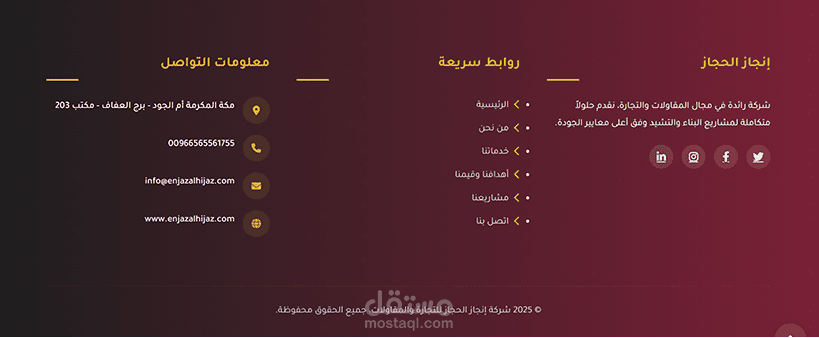 تصميم وتطوير موقع إلكتروني احترافي لشركة إنجاز الحجاز للتجارة والمقاولات،