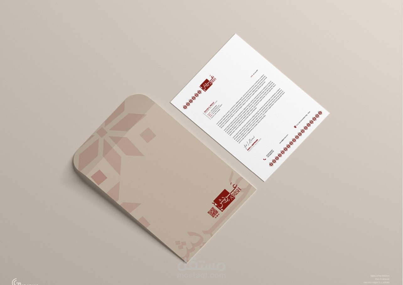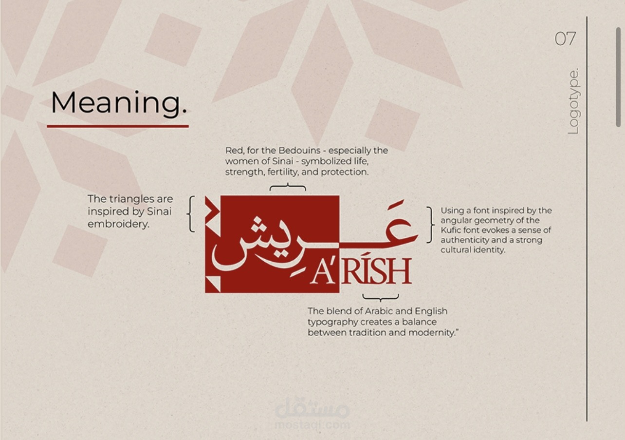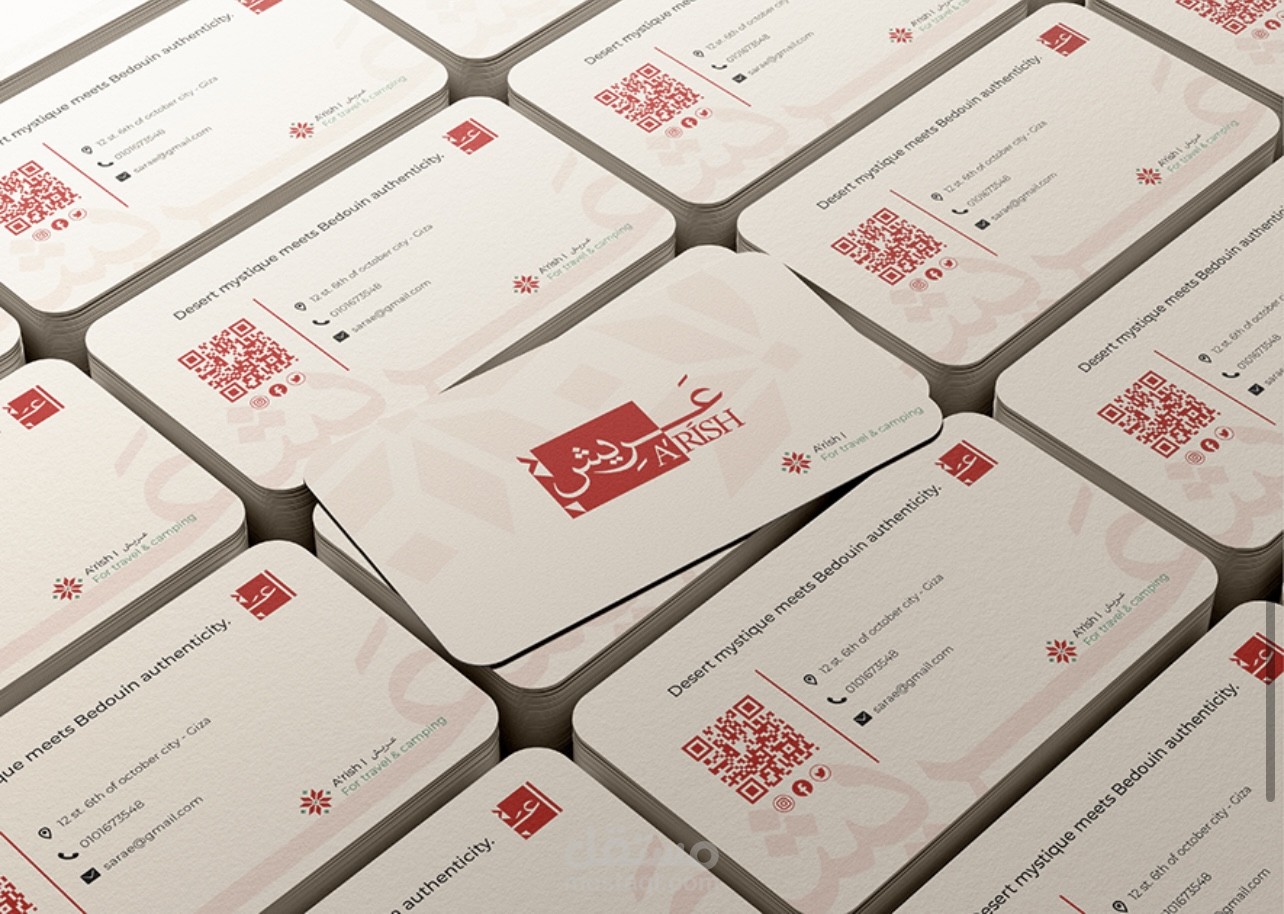 هويه بصريه لشركه عريش اللتي لا تقدم التخييم بصورته التجاريه وانما تقدم تجربه ثقافيه كان الهدف من الهويه اعاده احياء ثقافه البدو والفن السيناوي والصحراء المصريه