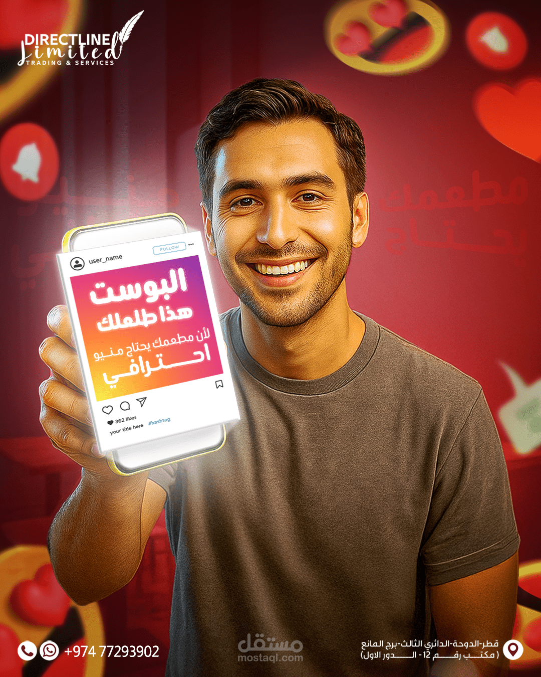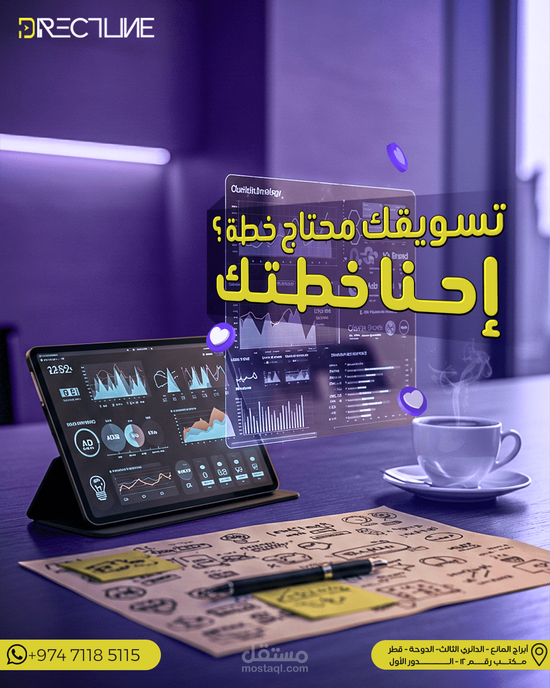 التحدي: تنفيذ حملة بصريّة متكاملة لوكالة تسويق قطرية تستهدف جذب انتباه الجمهور على منصات التواصل.
