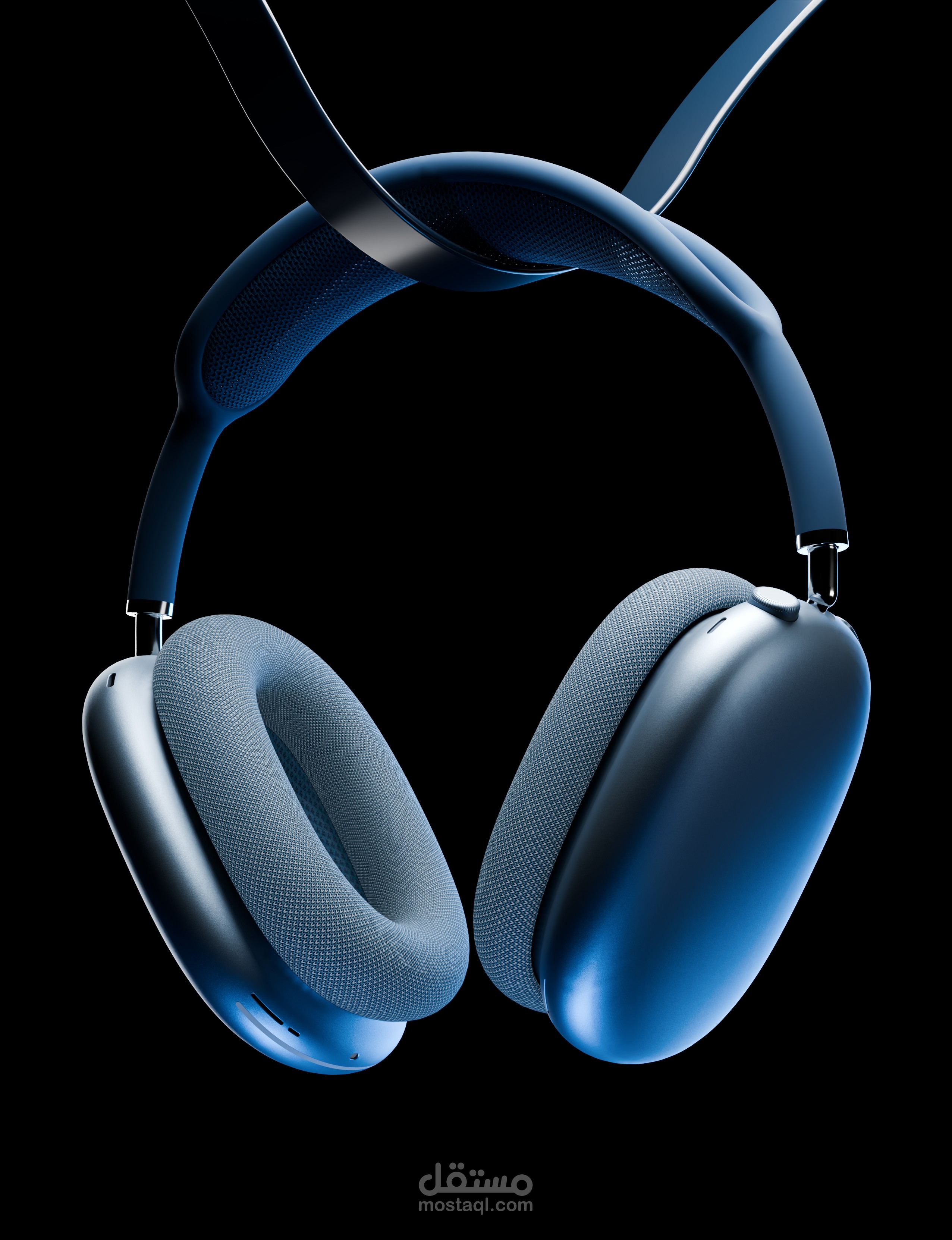 A high-end 3D concept render of the AirPods Max in a deep blue finish. This project focuses on showcasing the product’s premium materials, iconic silhouette, and minimalist design through dramatic lighting and clean composition.