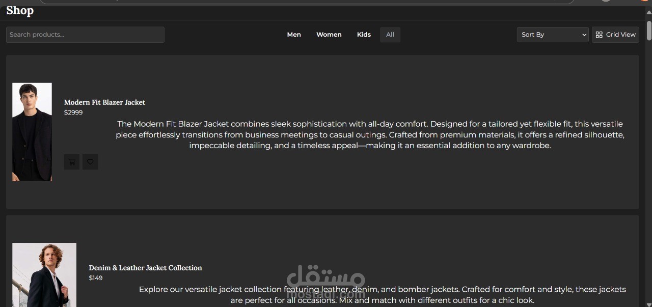 I developed a fashion e-commerce website using the MERN stack (MongoDB, Express.js, React, and Node.js). The platform allows users to browse, search, and purchase fashion products with an intuitive and modern UI. The frontend is built with React, providing a seamless, responsive, and dynamic shopping experience, while the backend is powered by Node.js and Express, ensuring secure and efficient API handling.
