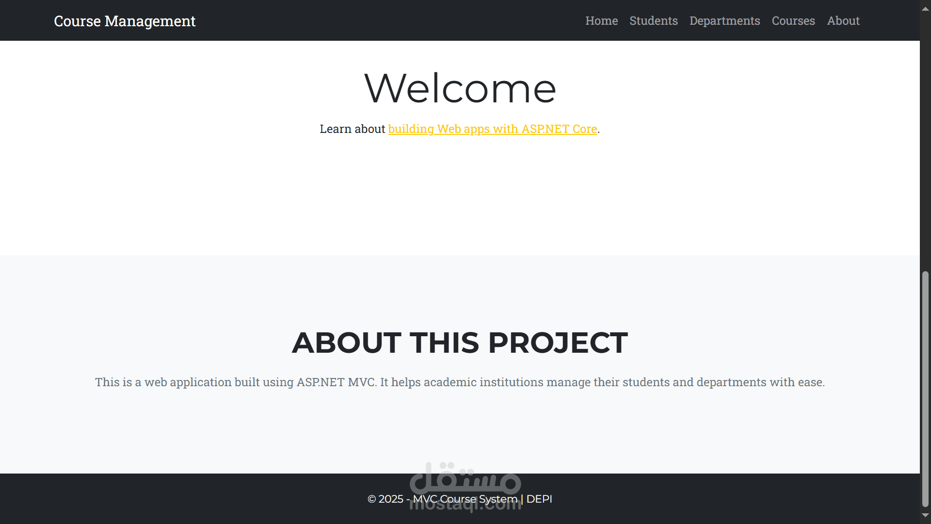 بناء مشروع أكاديمي باستخدام ASP.NET Core MVC يطبق مبادئ نظافة الكود وسهولة الصيانة.
