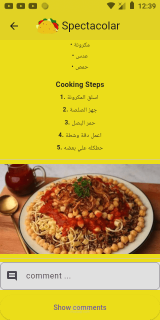 تطبيق موبايل لوصفات الطعام تم تطويره باستخدام Flutter، يتيح للمستخدمين تصفح وصفات متنوعة مع عرض المكونات وخطوات التحضير بطريقة سهلة ومنظمة. التطبيق يتميز بواجهة استخدام بسيطة وجذابة، مع إمكانية البحث عن الوصفات حسب الاسم أو المكونات، بالإضافة إلى حفظ الوصفات المفضلة لسهولة الوصول إليها لاحقًا.