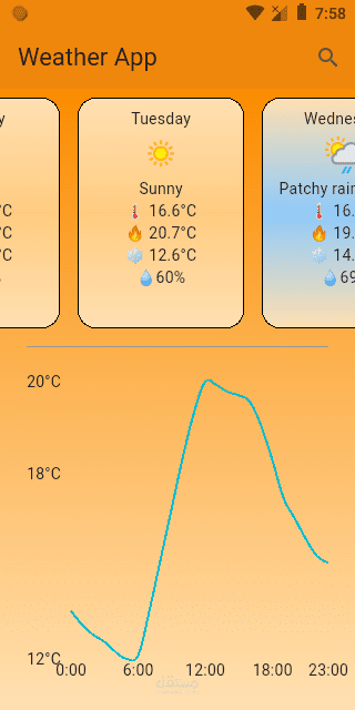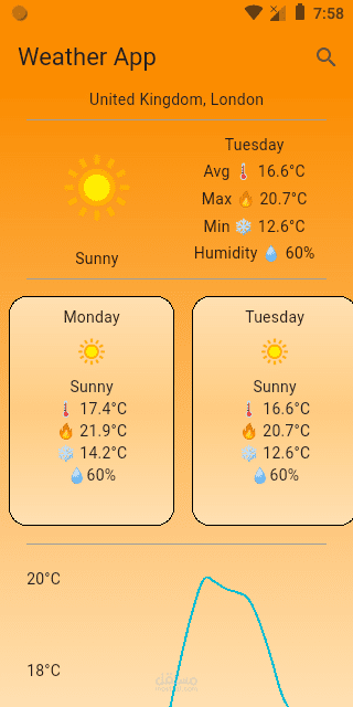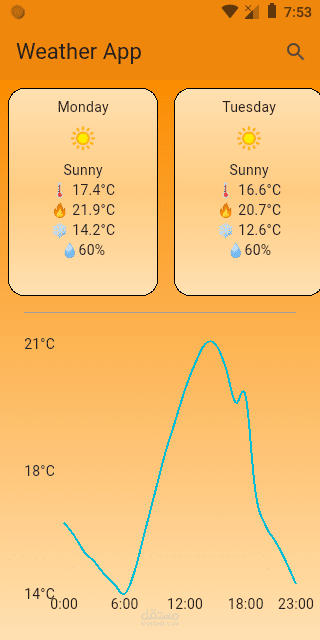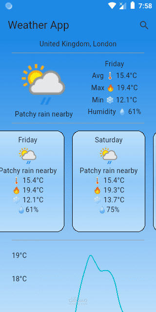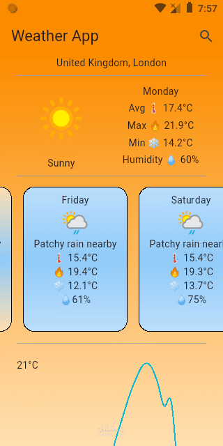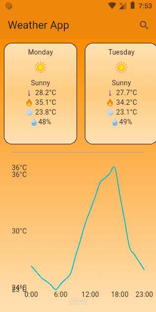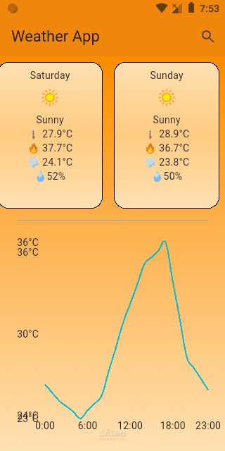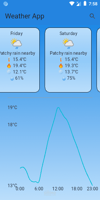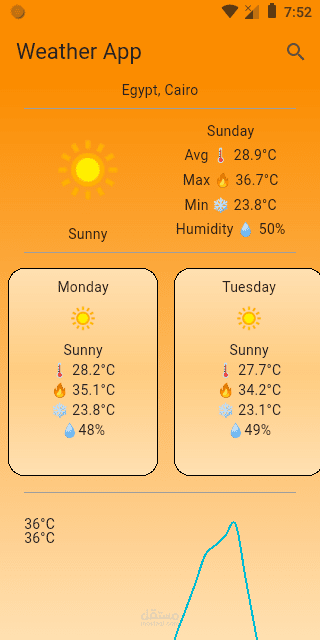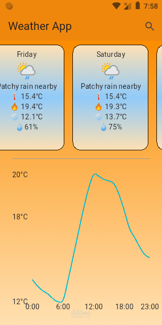عرض توقعات الطقس لمدة 7 أيام قادمة بطريقة مرتبة.