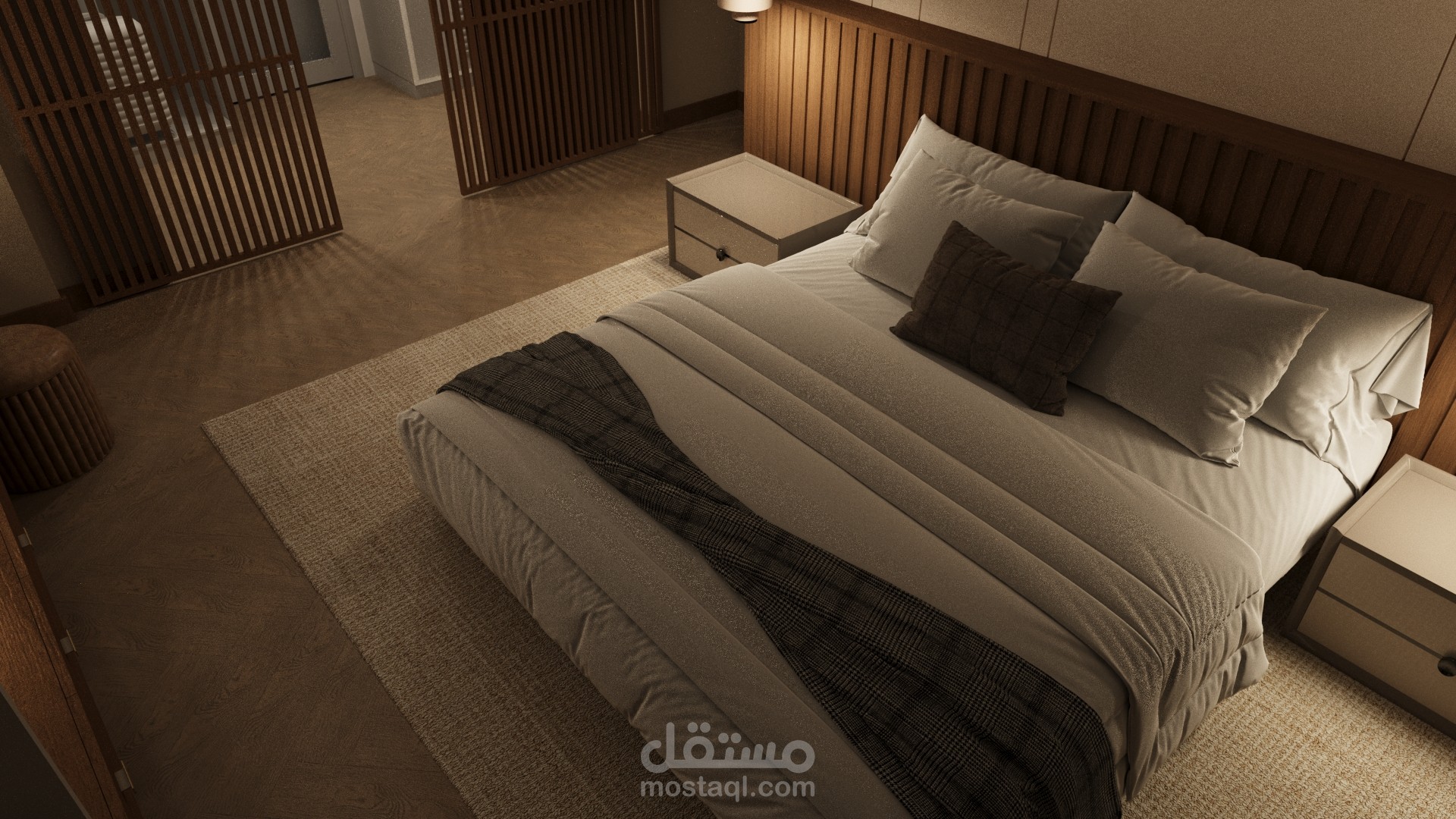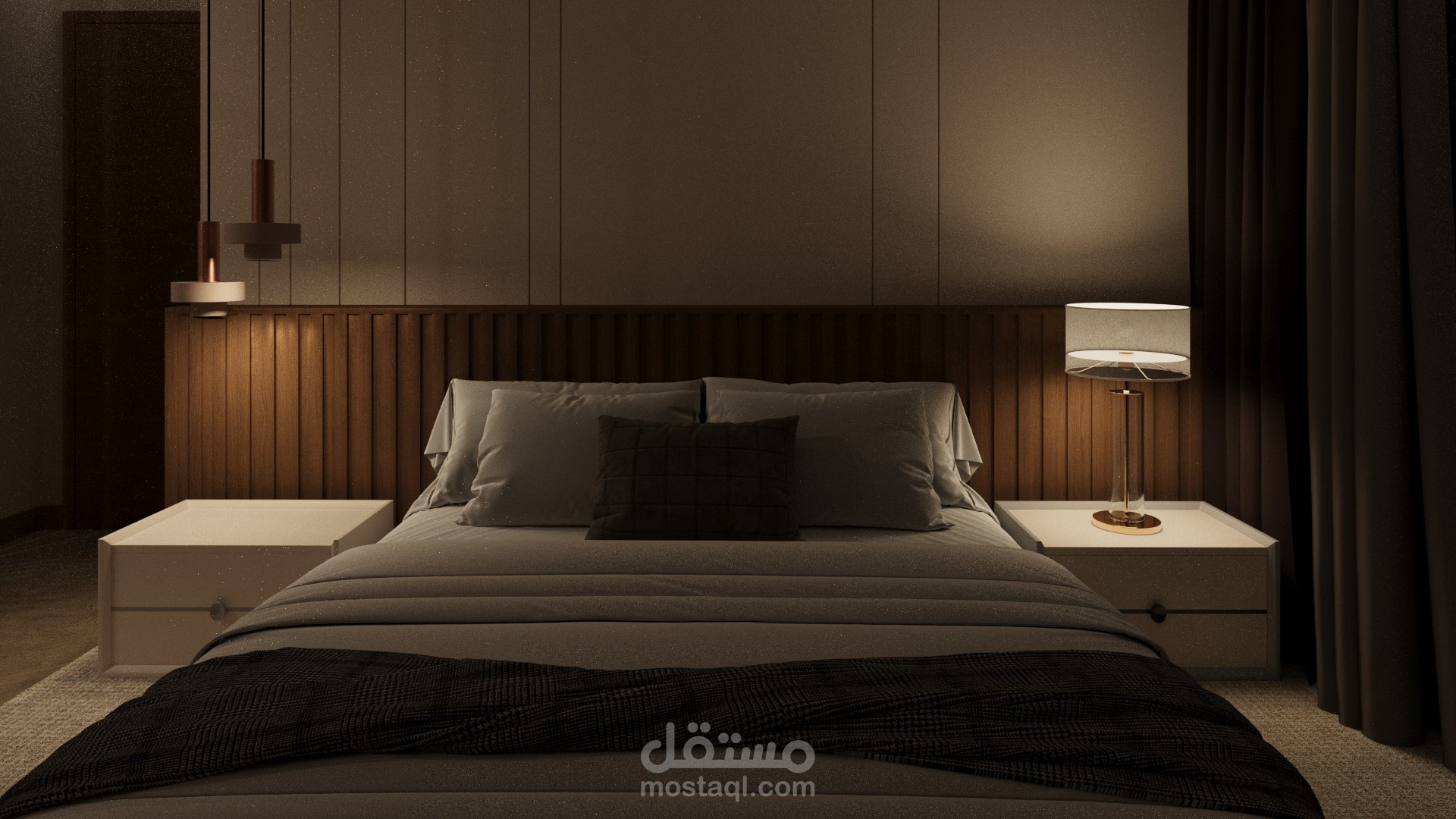 النتيجة: مساحة شخصية، هادئة، وعصرية، تجمع بين الأناقة والعملية، وتُجسّد رؤية العميل في غرفة نوم كمساحة للراحة والرفاهية.