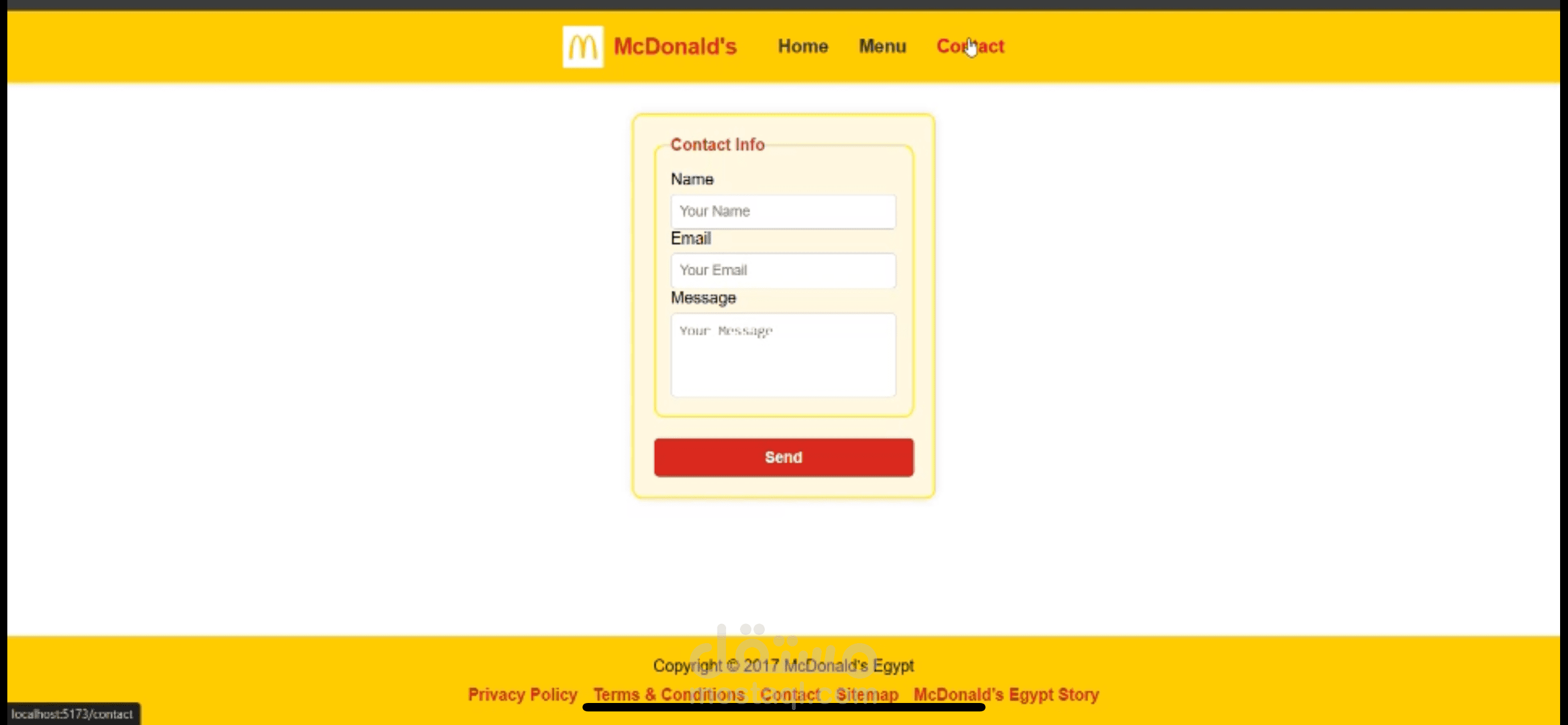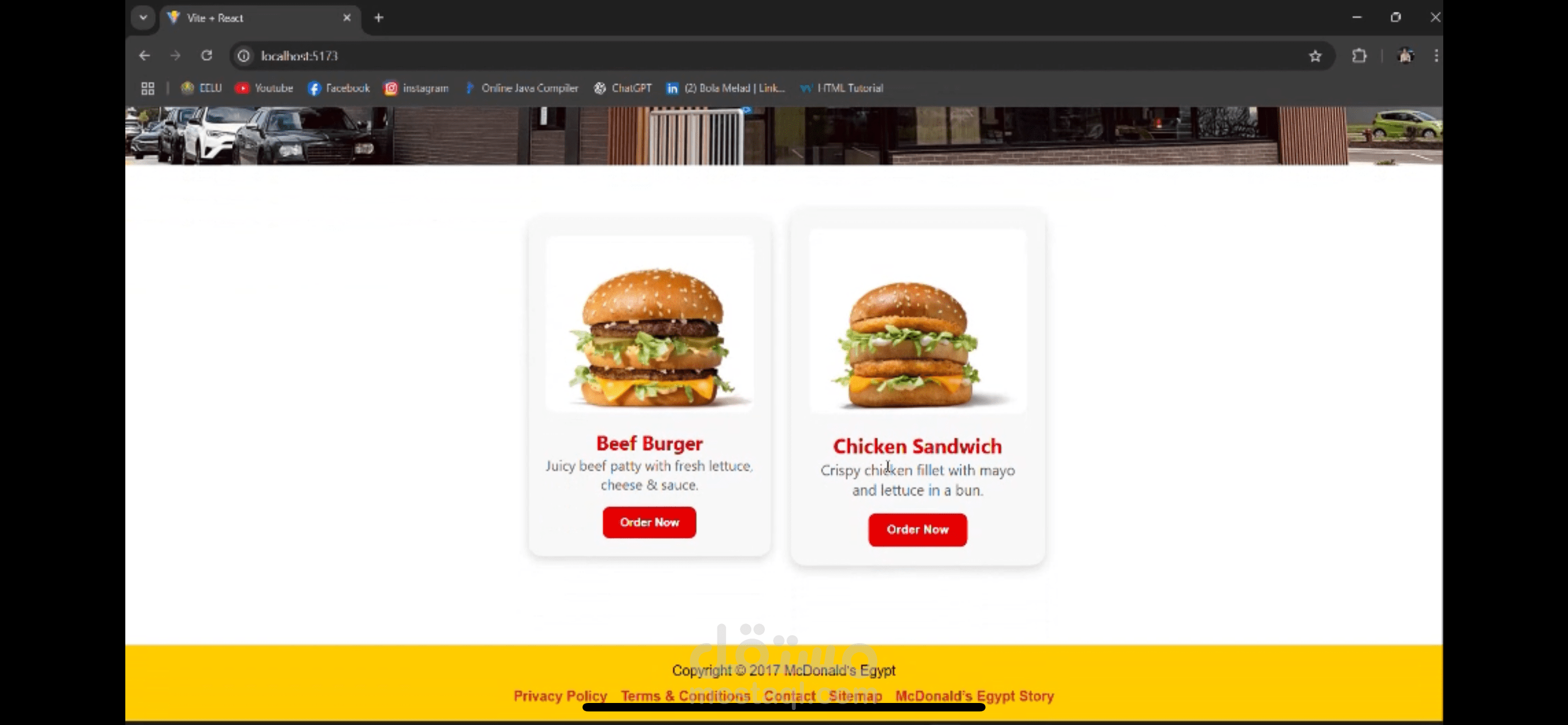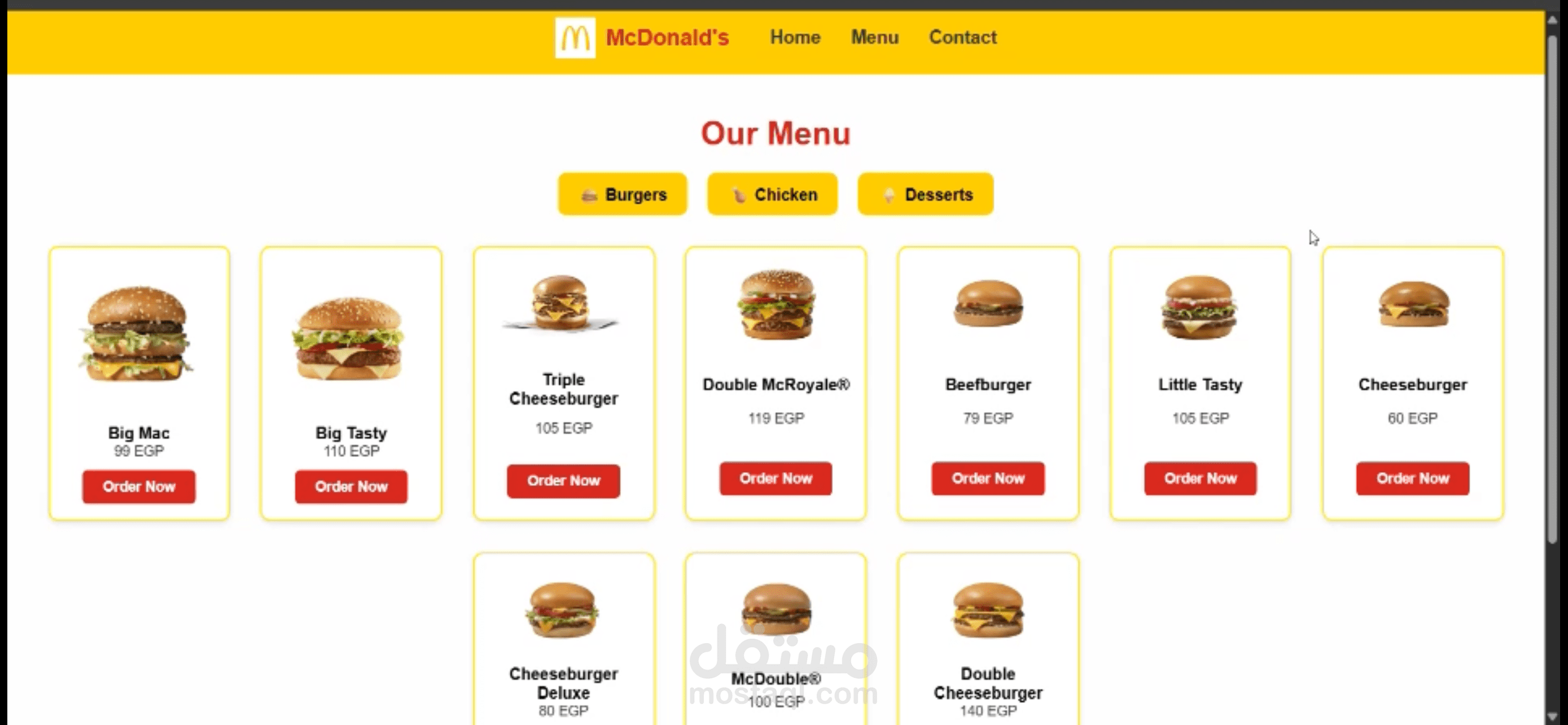 The menu is divided into interactive sections: Burgers, Chicken, and Desserts — making it fun to explore.