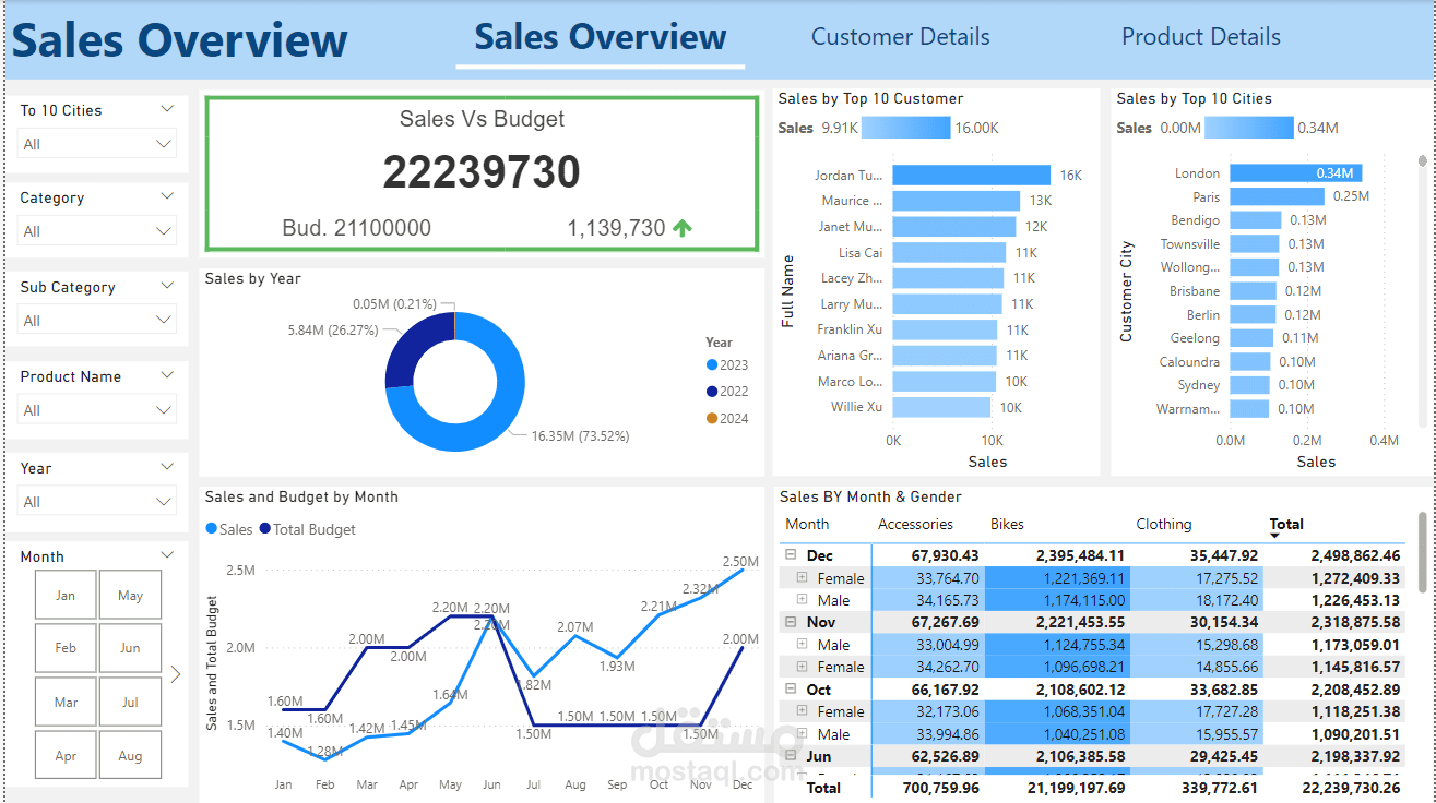 • Identified top 10 high-performing products and cities over time through advanced DAX
