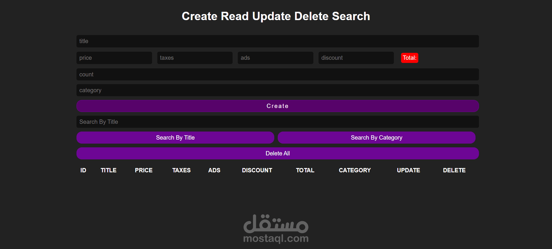 إضافة (Create): يمكن إدخال منتج جديد مع تفاصيله مثل اسم المنتج، نوعه، سعره، الضرائب المضافة عليه، الإعلانات المرتبطة به، وتصنيفات أخرى.