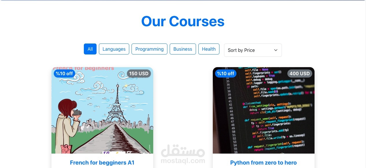 في هذا الموقع أقدم منصة تعليمية إلكترونية بواجهة عصرية و بألوان مريحة بصريا تحتوي هذه المنصة على كورسات تعليمية في مختلف مجالات الحياة تناسب جميع الشرائح العمرية والمجتمعية