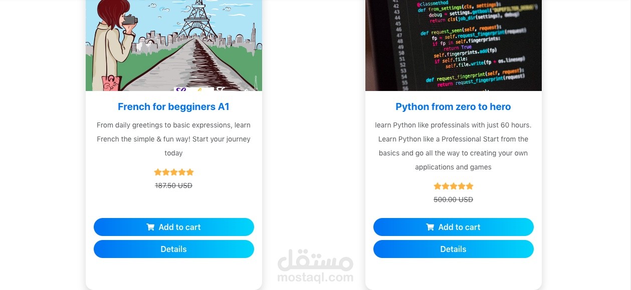 يتضمن الموقع أيضا سلة لشراء الكورسات بالإضافة إلى وجود كوبونات خصم. كما يتوفر في الموقع نظام إنشاء حساب وتسجيل دخول