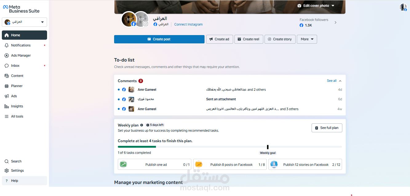 نشر المحتوى (Posts) على الصفحة حسب الخطة المتفق عليها (صور – بوستات كتابية – عروض).
