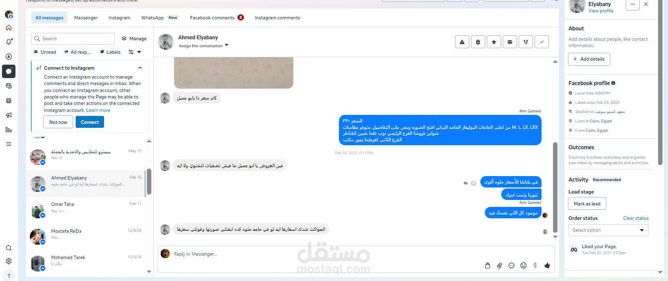 تحليل الأداء شهريًا وتقديم تقارير بالنتائج مع اقتراحات للتحسين.في معرض الاعمال ستجد بعض الصفحات التي تم العمل عليها وادارتها بداية من المسدج اللي بتيجي للعميل بمجرد مايبعت لحد كل شئ