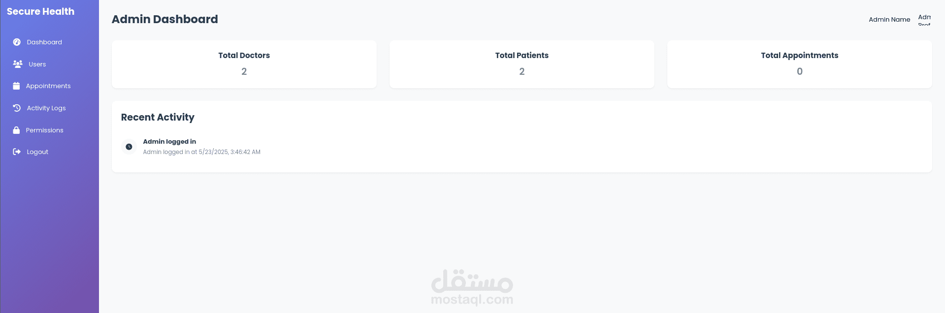 المشروع بيوفر أدوار مختلفة للمستخدمين (Admin – Doctor – Patient) مع Role-Based Access Control (RBAC) مطبق على مستوى التطبيق وقاعدة البيانات.