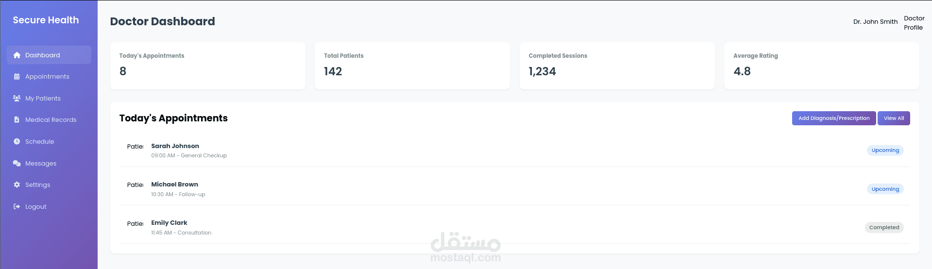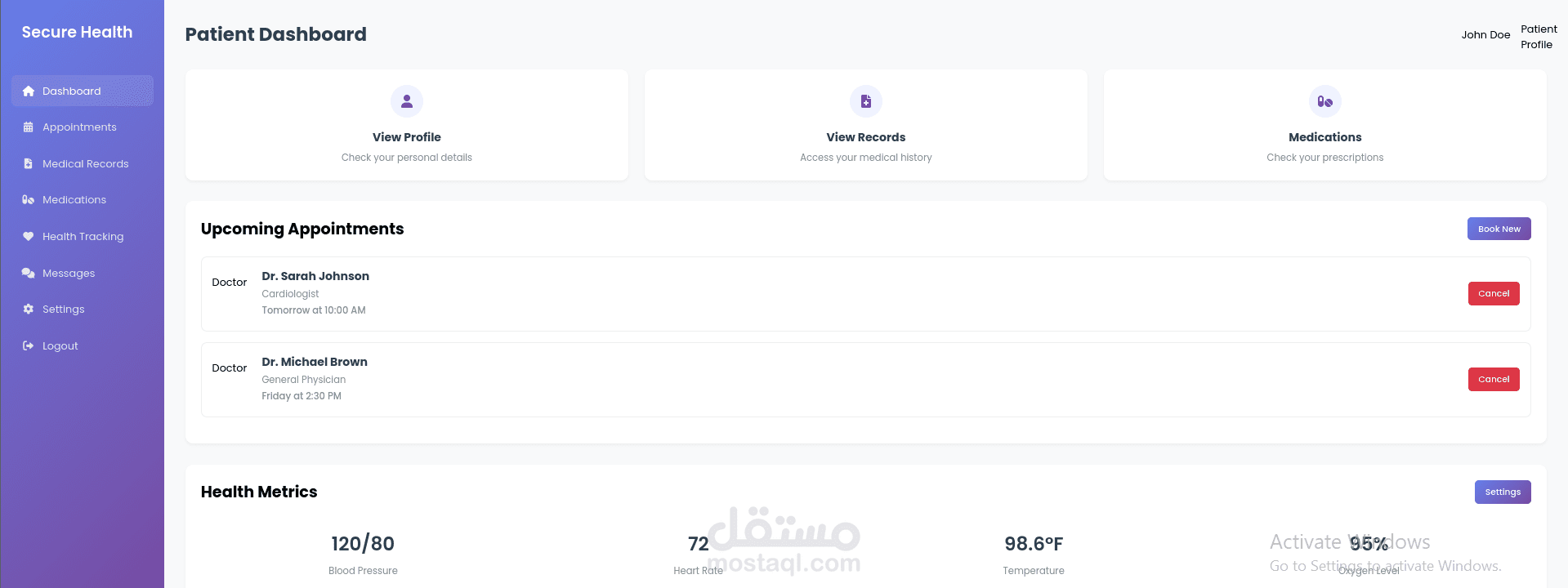 Secure Health هو نظام طبي آمن لإدارة المواعيد والسجلات الطبية، بيحاكي بيئة حقيقية علشان نتعلم ونطبق استراتيجيات الحماية ضد التهديدات السيبرانية.