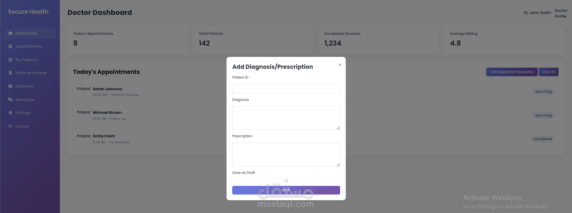 تشفير (Encryption): البيانات الحساسة زي التشخيص والملاحظات بتتخزن مشفرة.