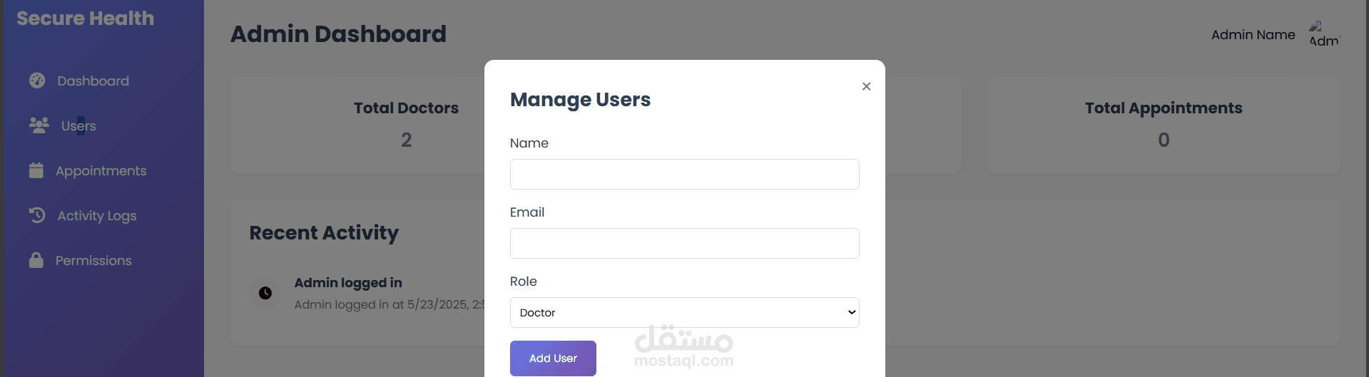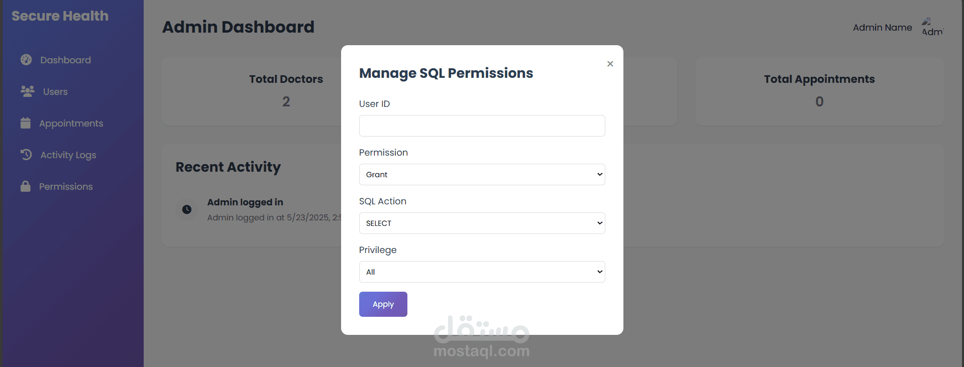 Admin Panel: لإدارة صلاحيات المستخدمين (Grant/Revoke)، متابعة النشاط، وتفعيل/تعطيل الحسابات.