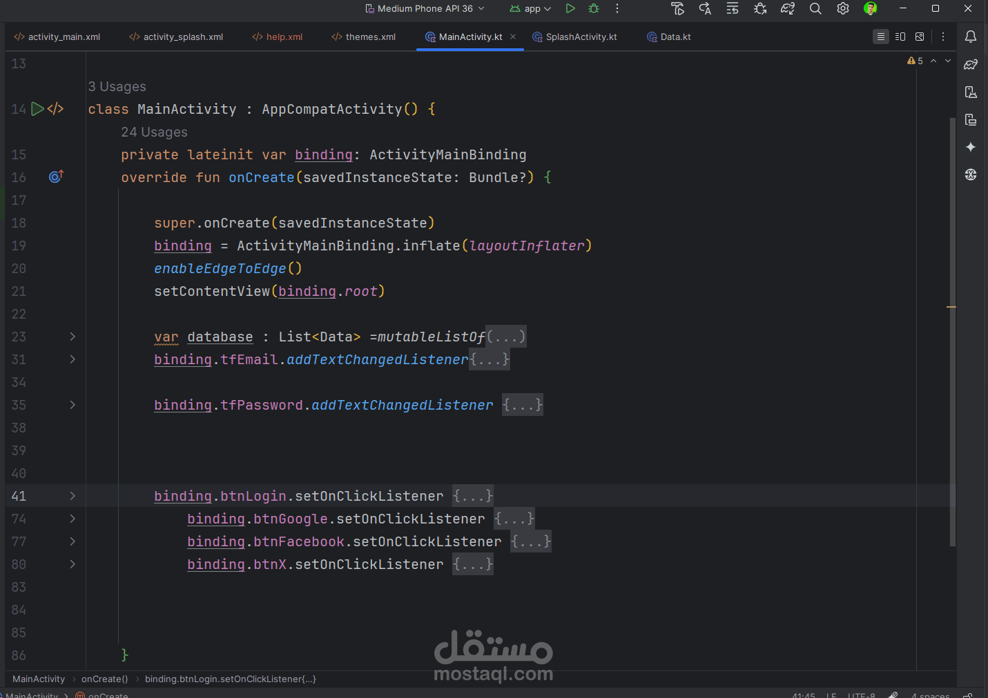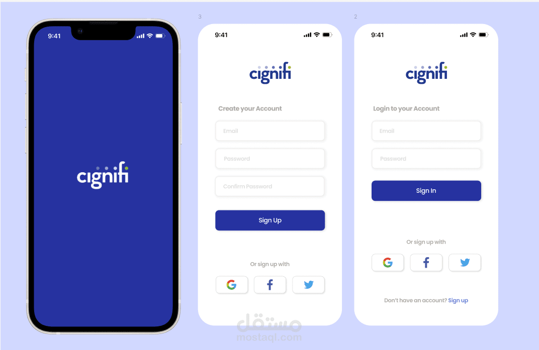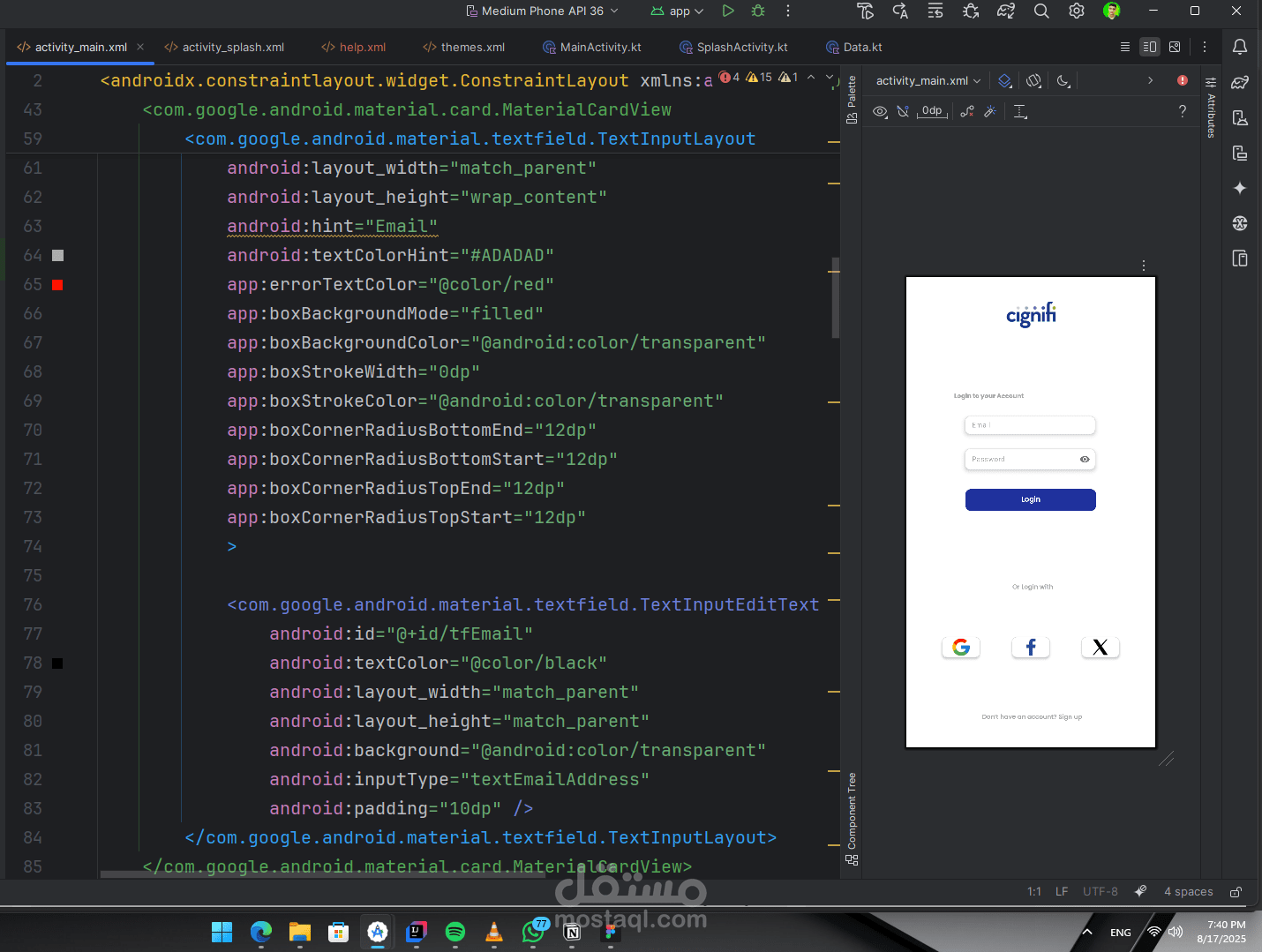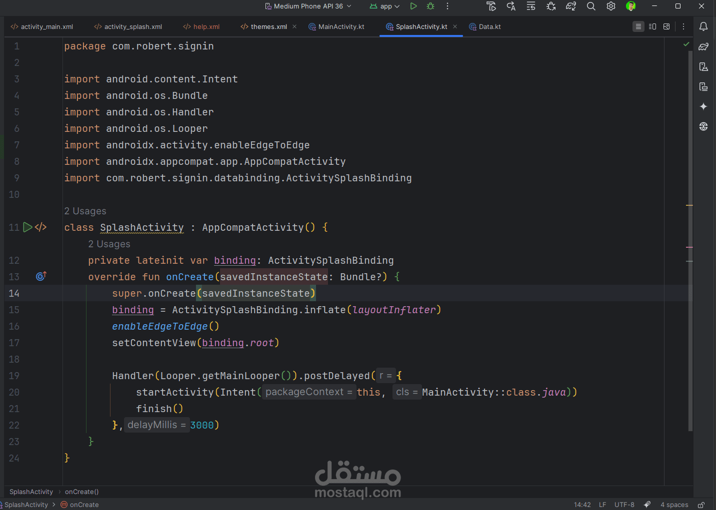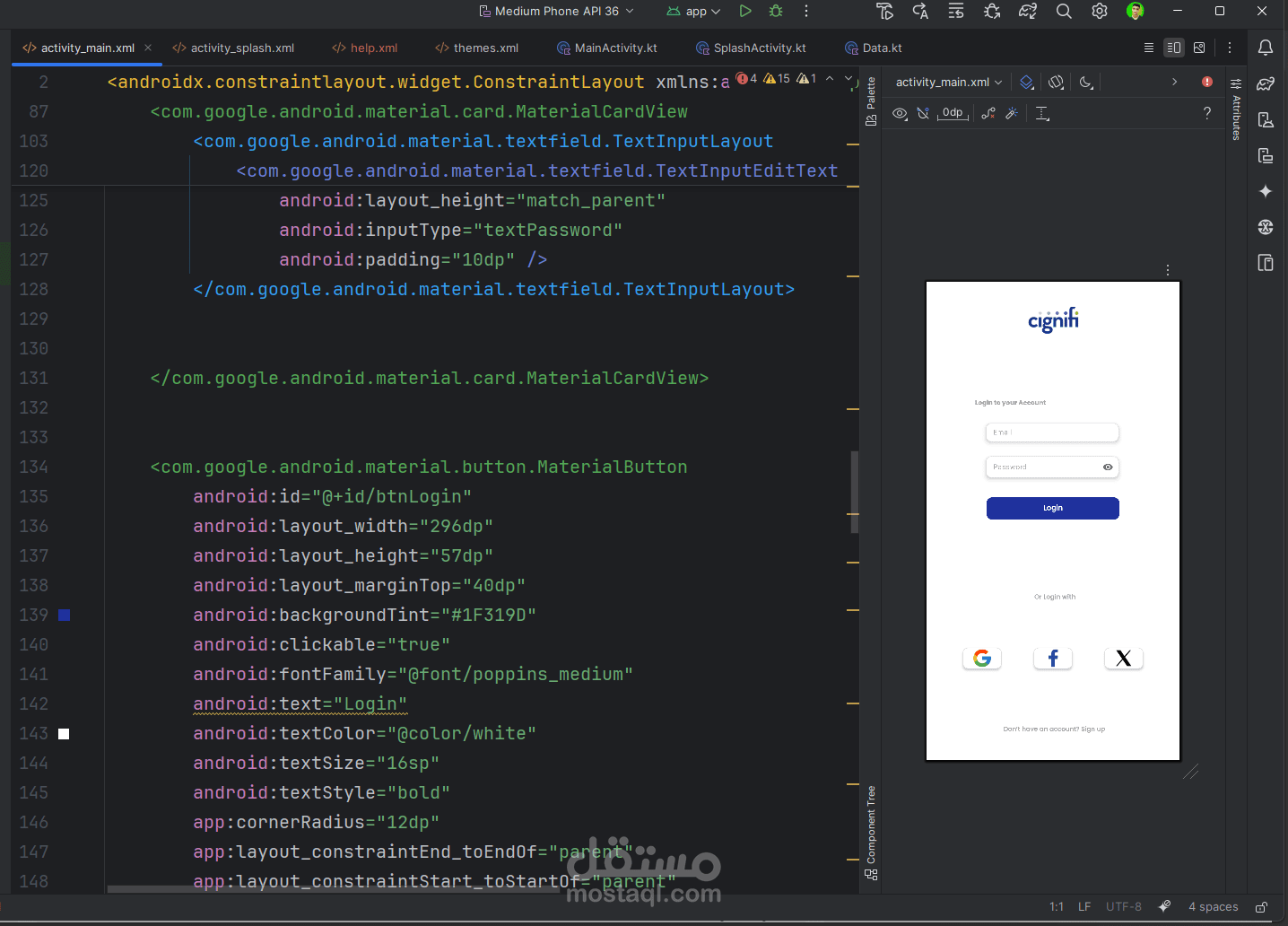 واجهة تسجيل الدخول و انشاء حساب و splash screen