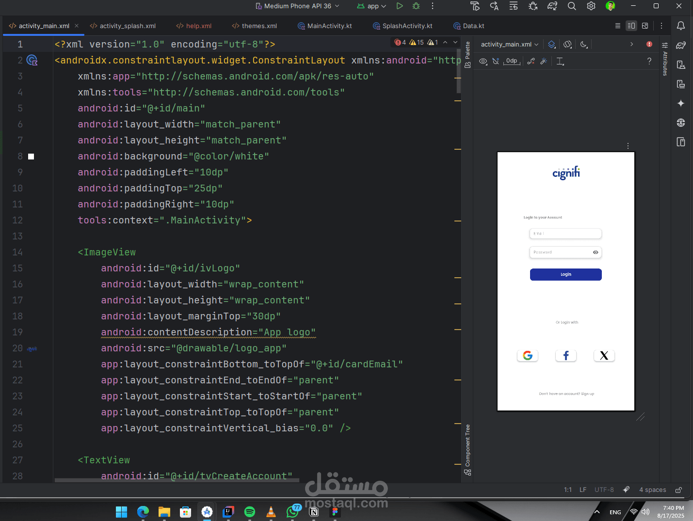 قمت تحويل هذا ال UI الي كود XML & logic with Kotlin