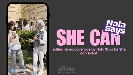 She Can: تحرير فيديو التغطية الإعلامية لفعالية She Can مع منصة Nala Says.