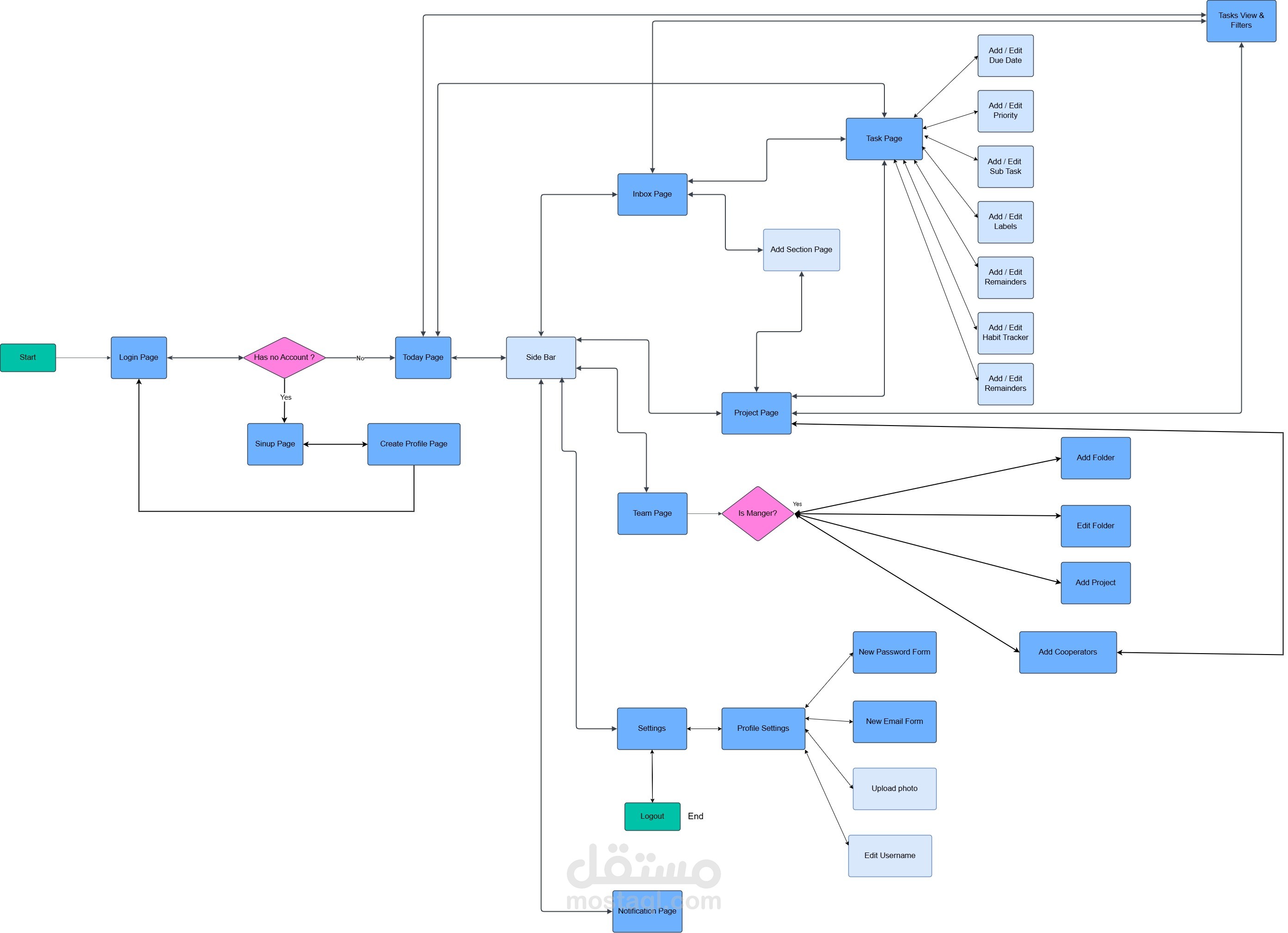 تدفقات المستخدم (User Flows): لتوضيح كيفية تنقّل المستخدمين المختلفين عبر النظام.