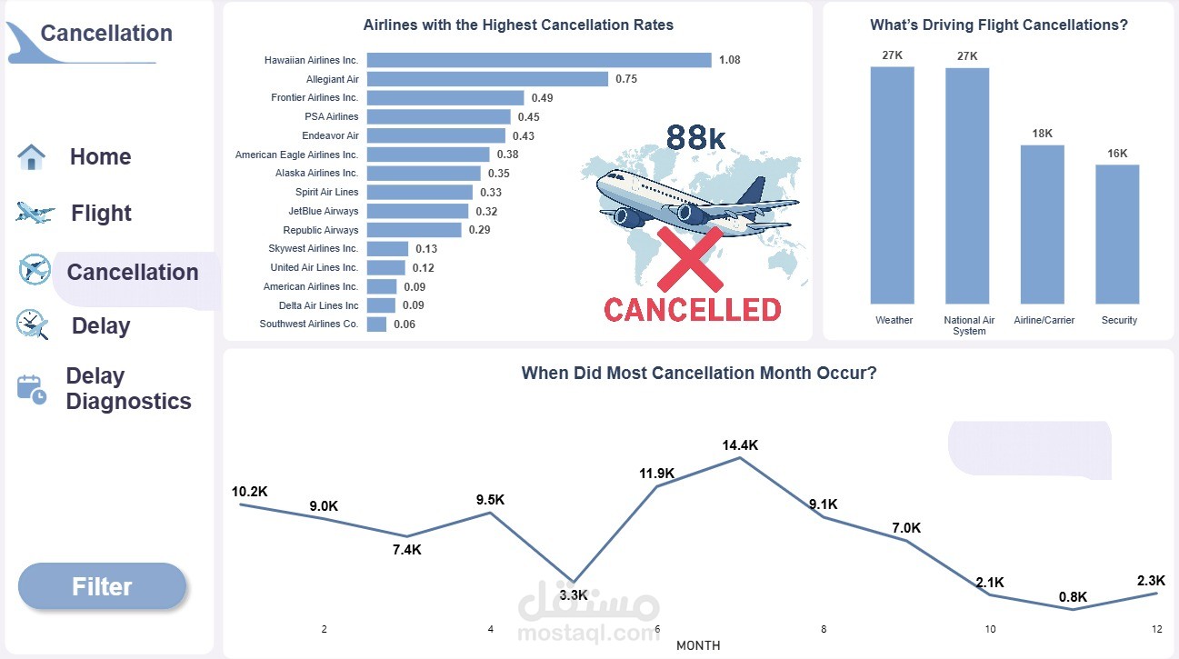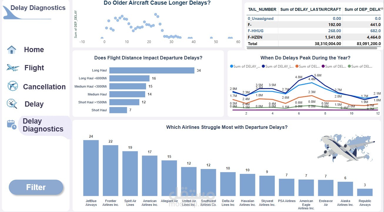 اللوحات تم تصميمها بشكل احترافي باستخدام رسوم بيانية تفاعلية مع واجهة منظمة وسهلة الاستخدام، تساعد شركات الطيران والمطارات على اتخاذ قرارات أسرع وأكثر دقة.
