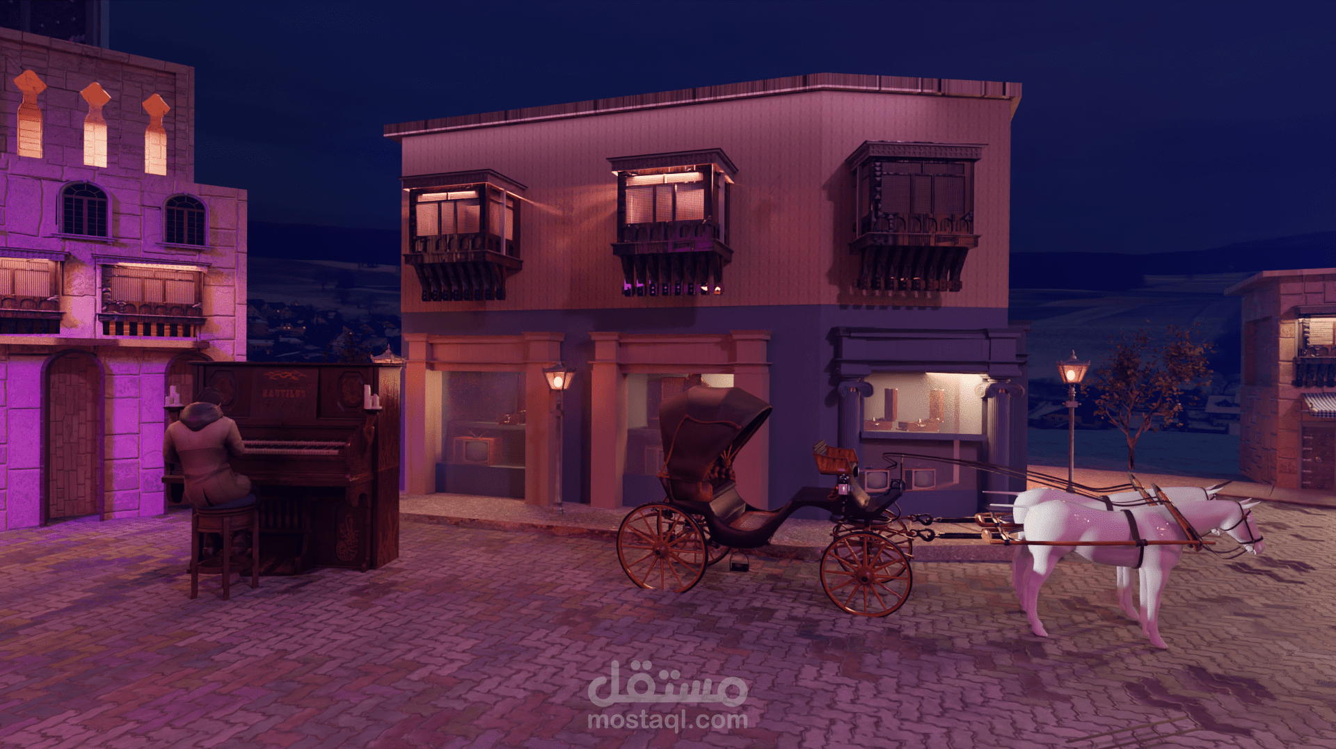 This project is a 3D animated video created using Blender. I modeled, animated, and rendered the entire scene myself. The concept revolves around a man browsing the Anghami music app. When he plays an old song, the entire environment transforms into a nostalgic version of the past, matching the era of the song. Through this video, I aimed to visualize how music can transport us back in time emotionally and visually