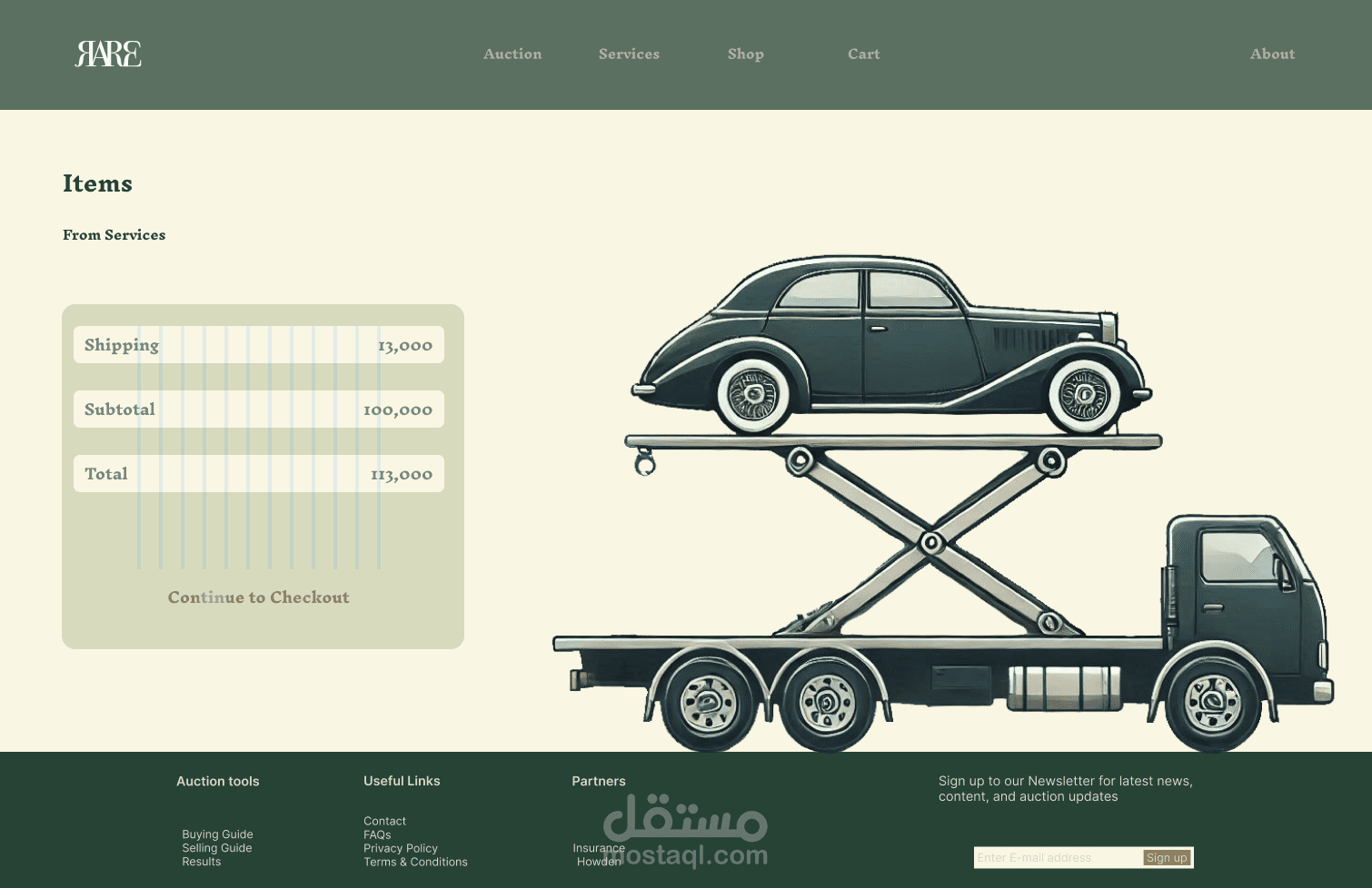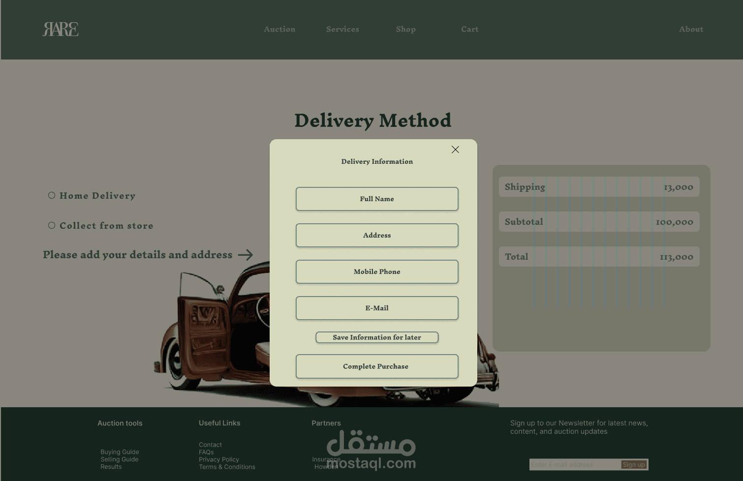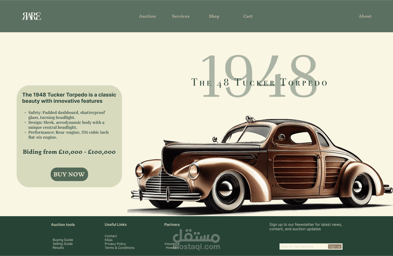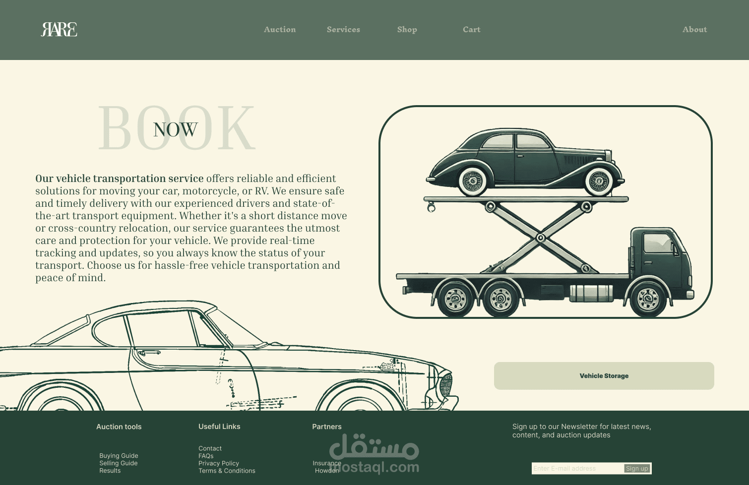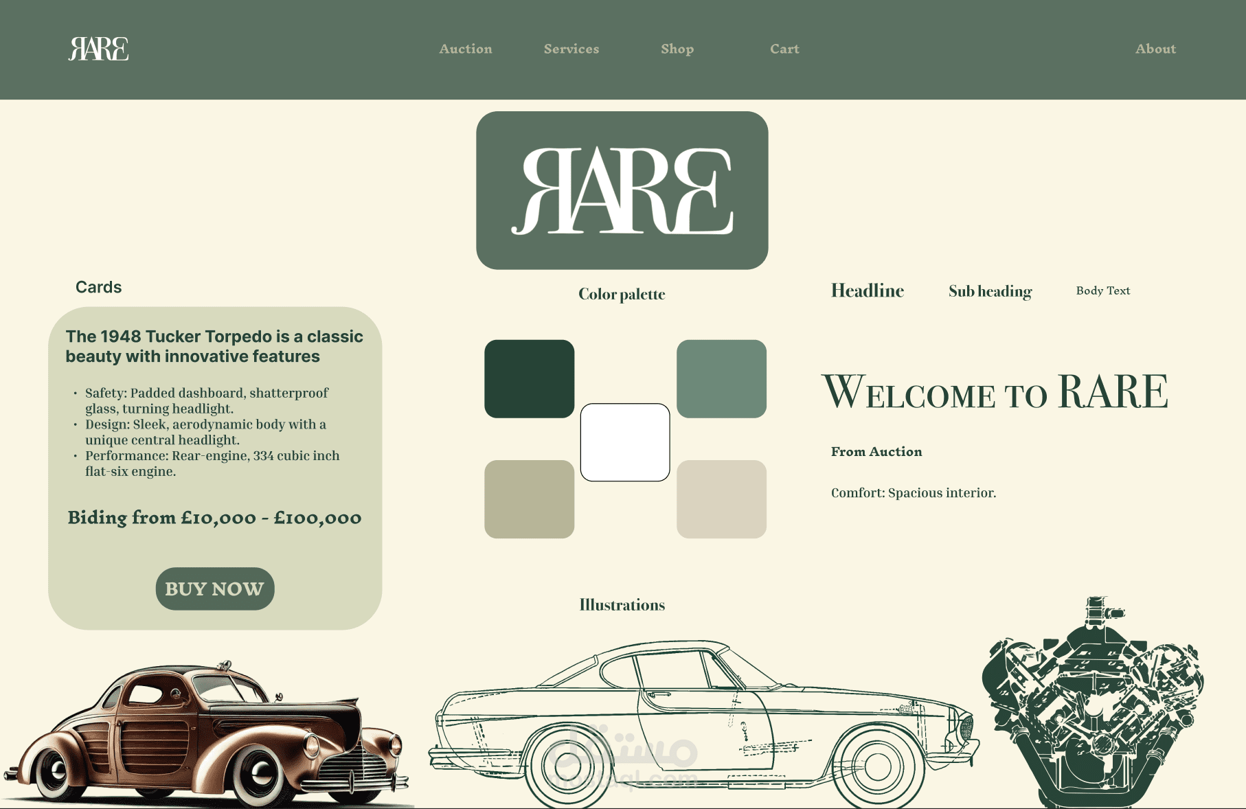 This task was for creating a brand that auction rare cars online, provides transportation, and maintenance for the buyer. I used Figma to design the UI and navigation. The look and feel of this brand is supposed to be warm and classy to target a niche client base, with the use of the color palette and elements in design we achieved the desired expectation.