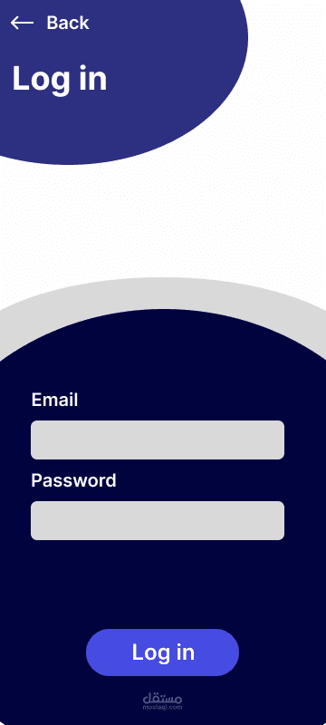 شاشة Log in بإدخال البريد وكلمة المرور.