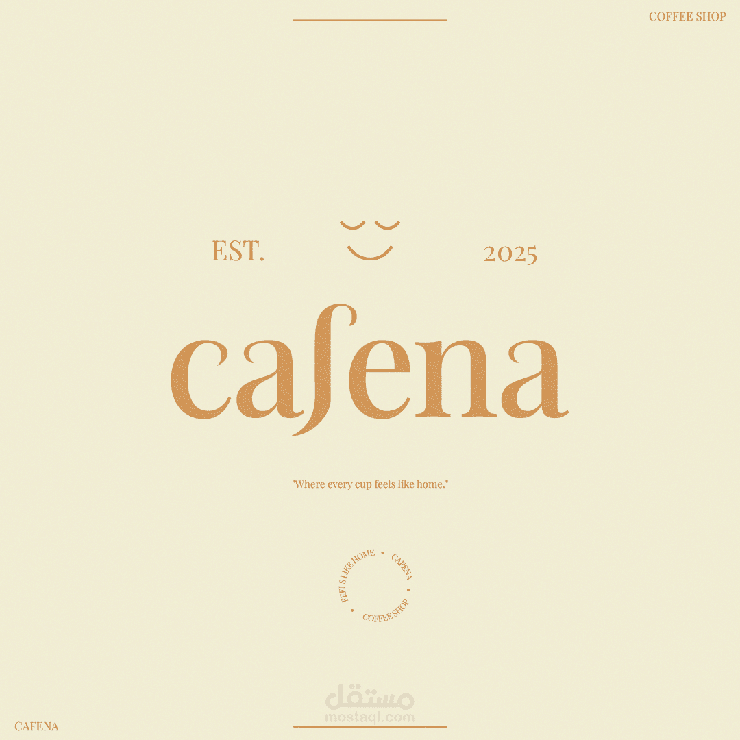 مشروع تصميم متكامل لمقهى "كافينا"، يتضمن الهوية البصرية، تصميم الشعار، والمحتوى الإعلاني لوسائل التواصل الاجتماعي.