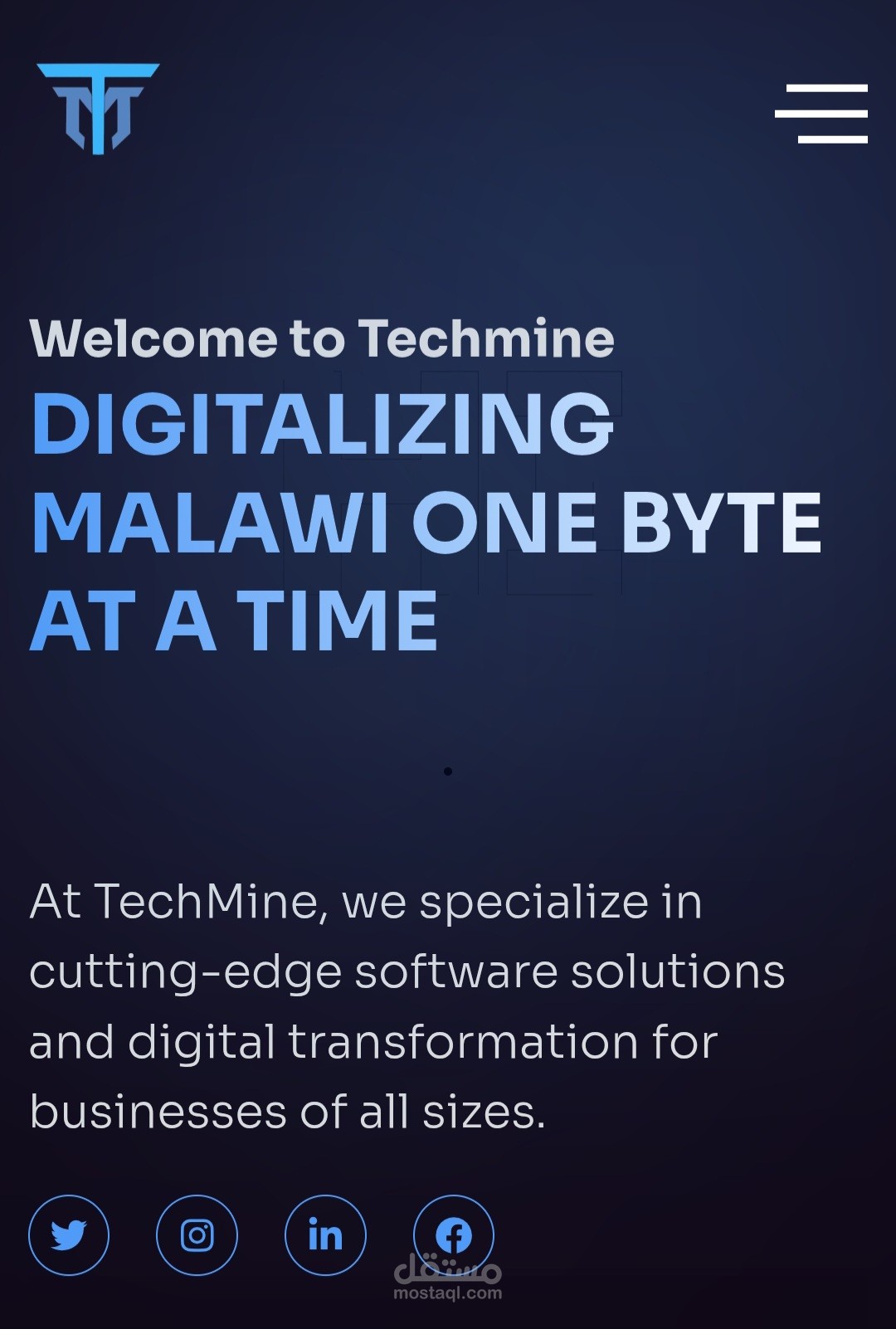 Developed a modern, conversion-focused corporate website for TechMine MW – a technology solutions provider specializing in industrial digital transformation. The platform serves as the digital flagship for showcasing the company's expertise in mining technology, IoT systems, and AI-driven operational optimization across Malawi and Southern Africa.
