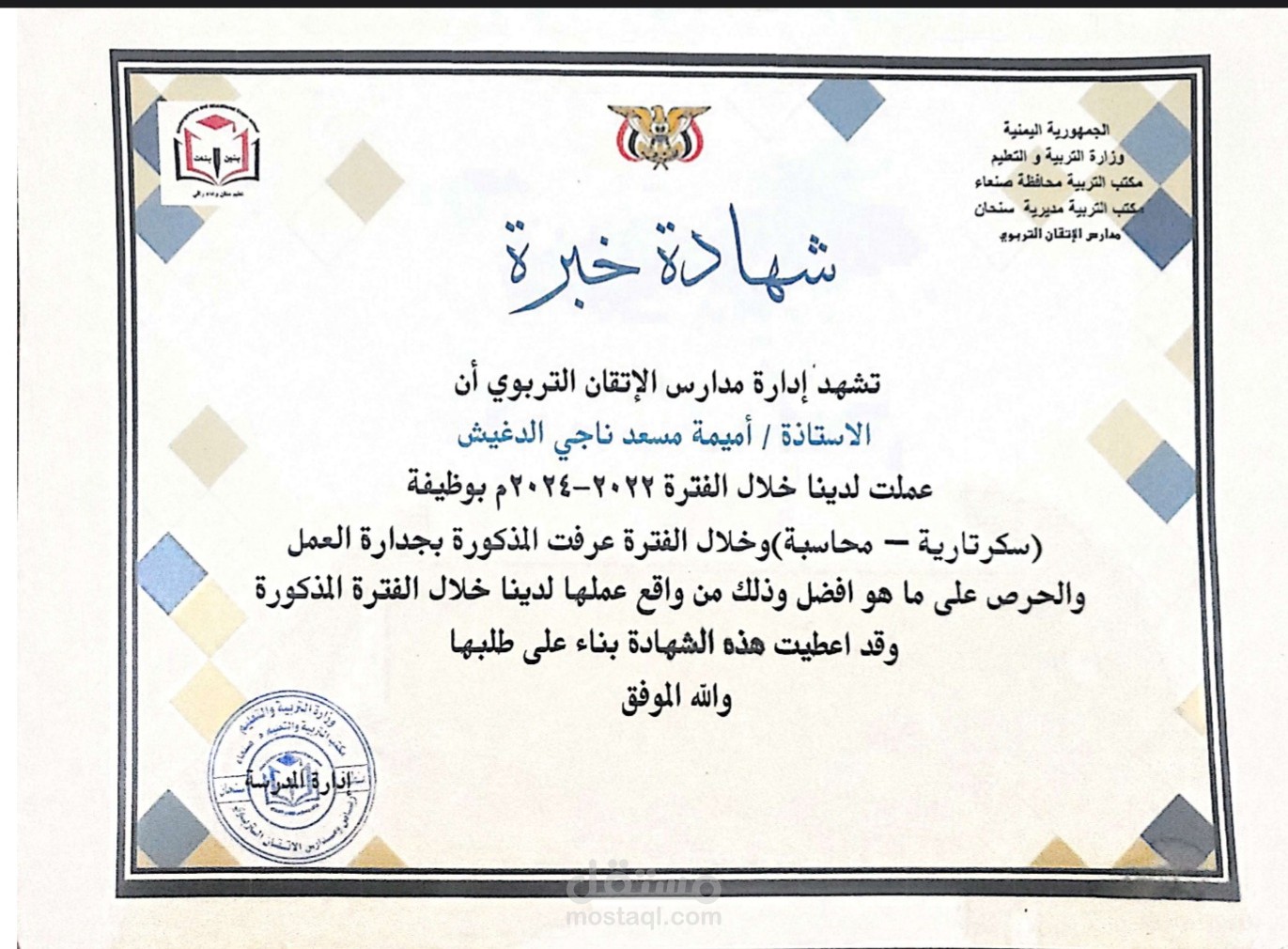 العمل بمجال السكرتارية التنفيذية والمحاسبة كالتالي:
