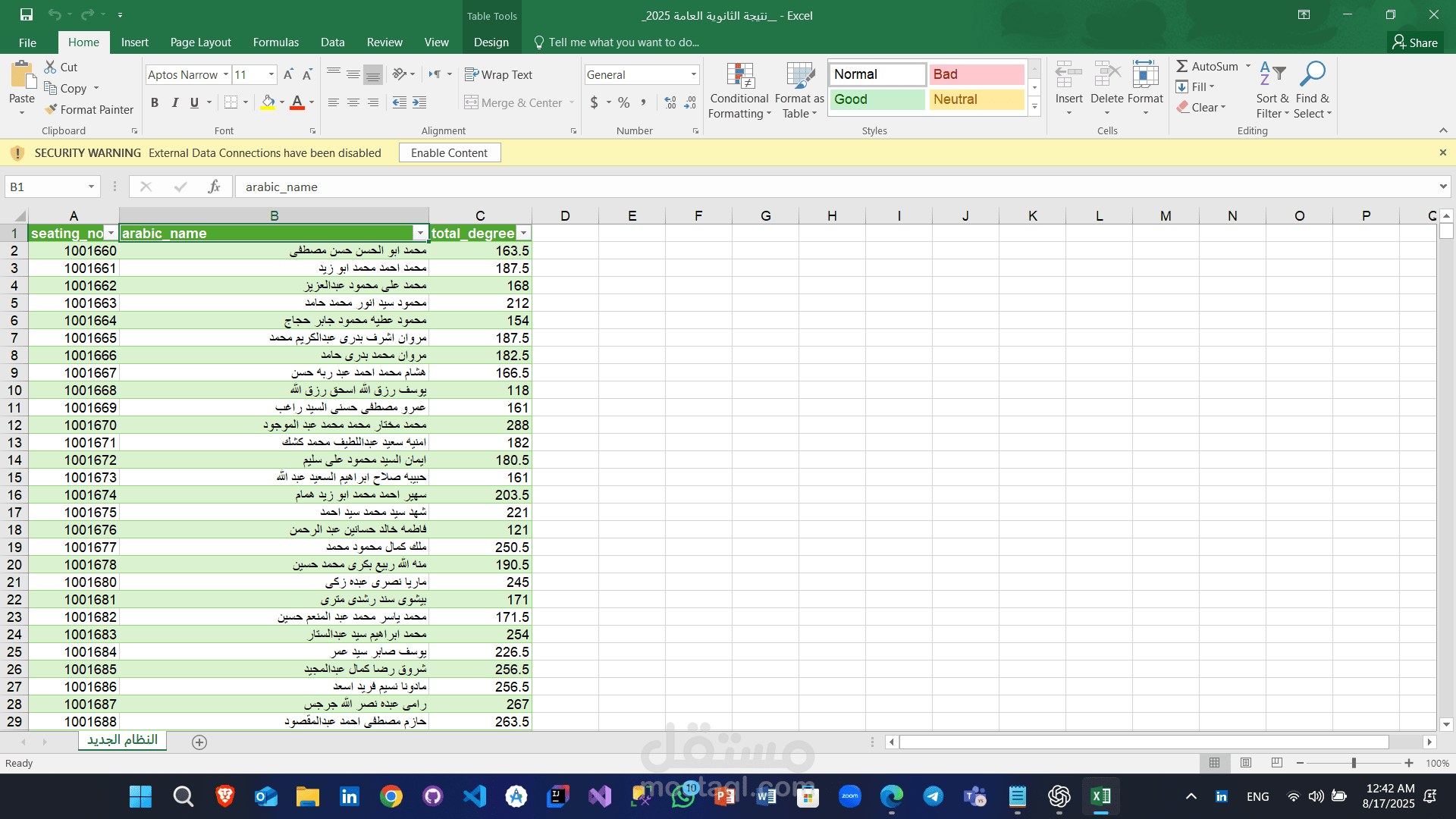 إدخال البيانات على ملفات Excel وتنظيمها بصيغ وجداول واضحة.