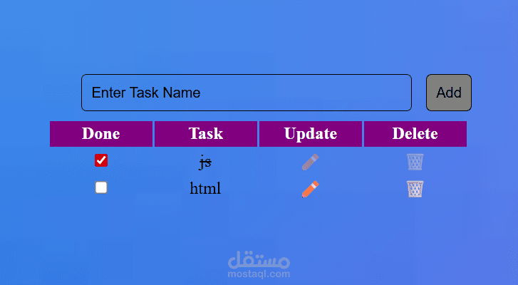 إضافة المهام بسهولة: يستطيع المستخدم إدخال مهمة جديدة بالضغط على زر الإضافة، وتظهر في واجهة التطبيق فورًا دون الحاجة لإعادة تحميل الصفحة.