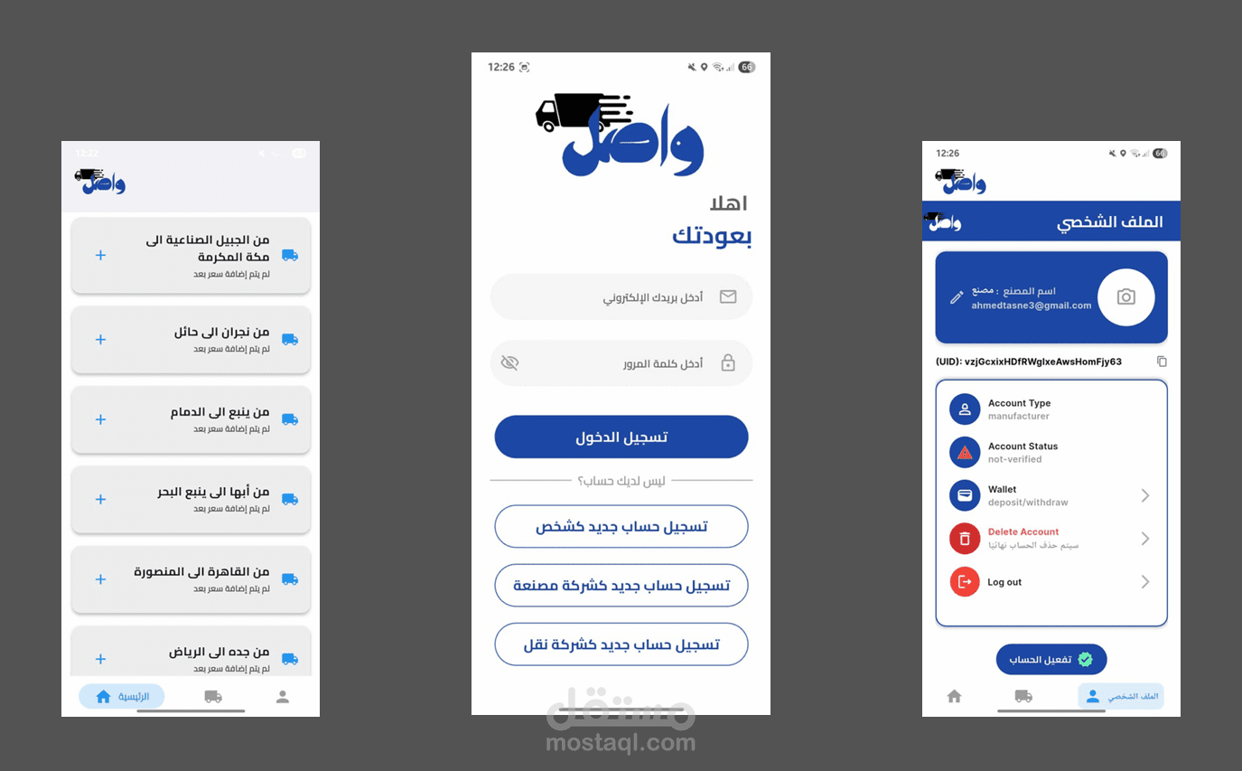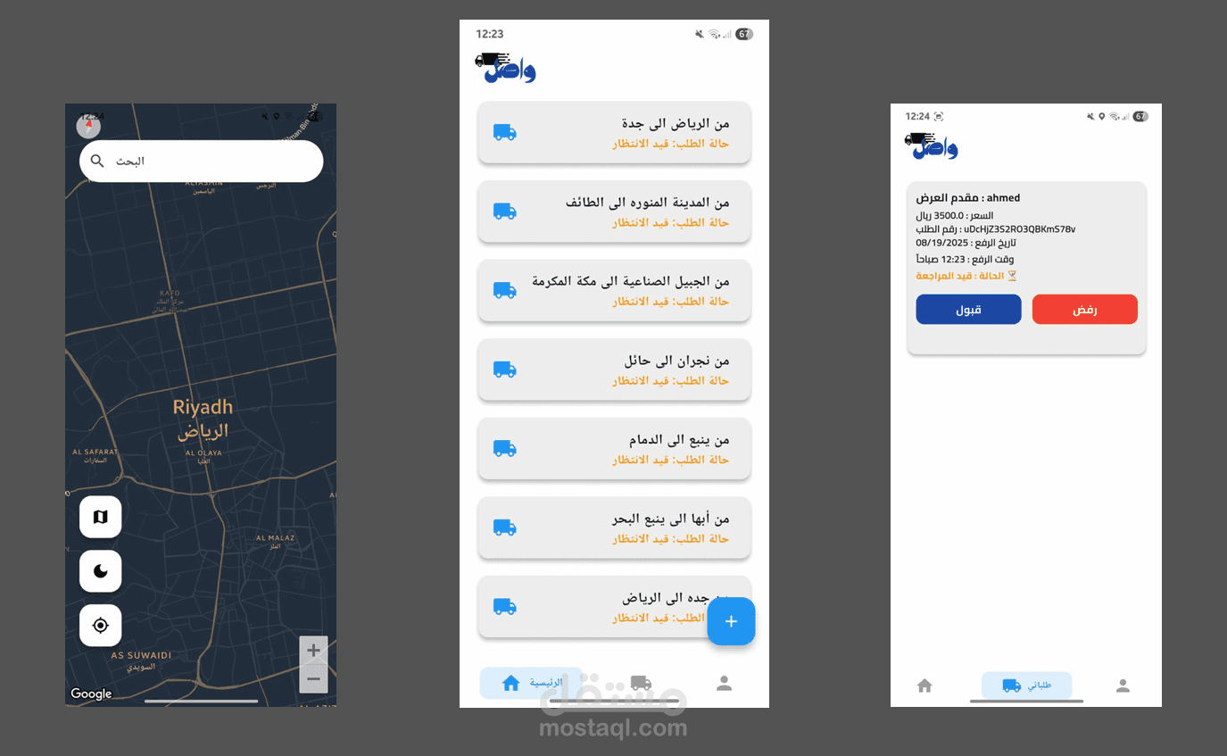 تطبيق واصل يوفر بيئة موثوقة وسريعة لتسهيل حركة البضائع سواء كانت منتجات كبيرة من المصانع أو طلبات خفيفة للأفراد.
