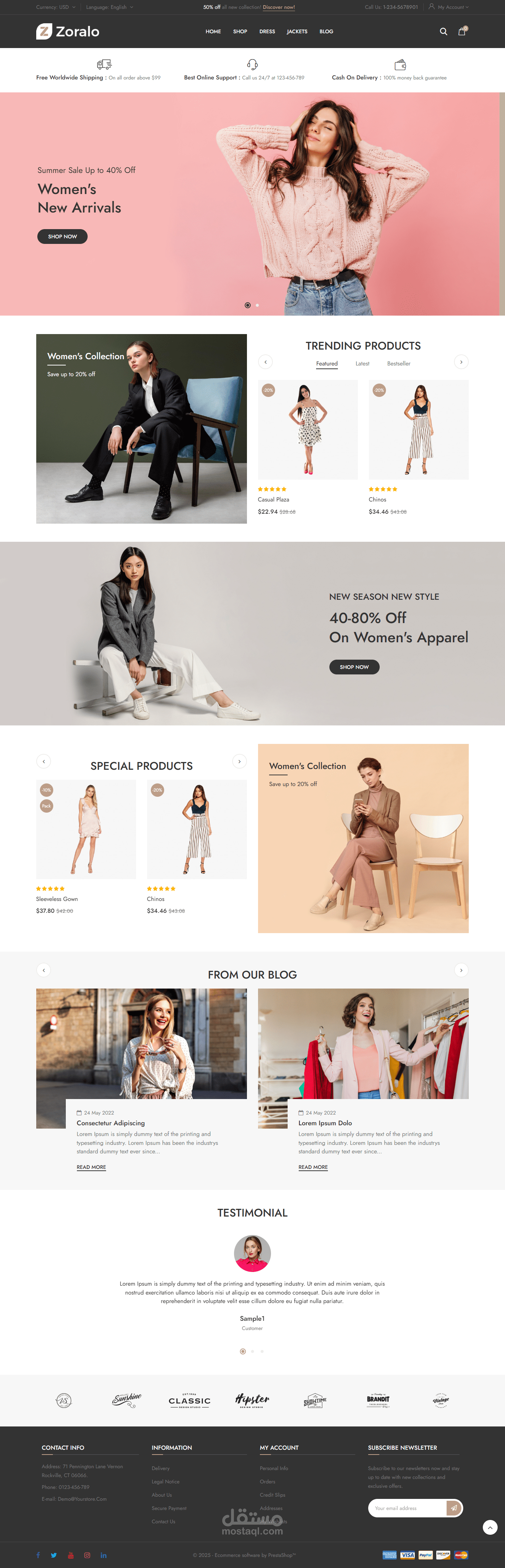 In short, this website can be used as a professional online fashion store with all essential e-commerce features such as product management, promotional offers, blog integration, customer reviews, and multiple payment methods.