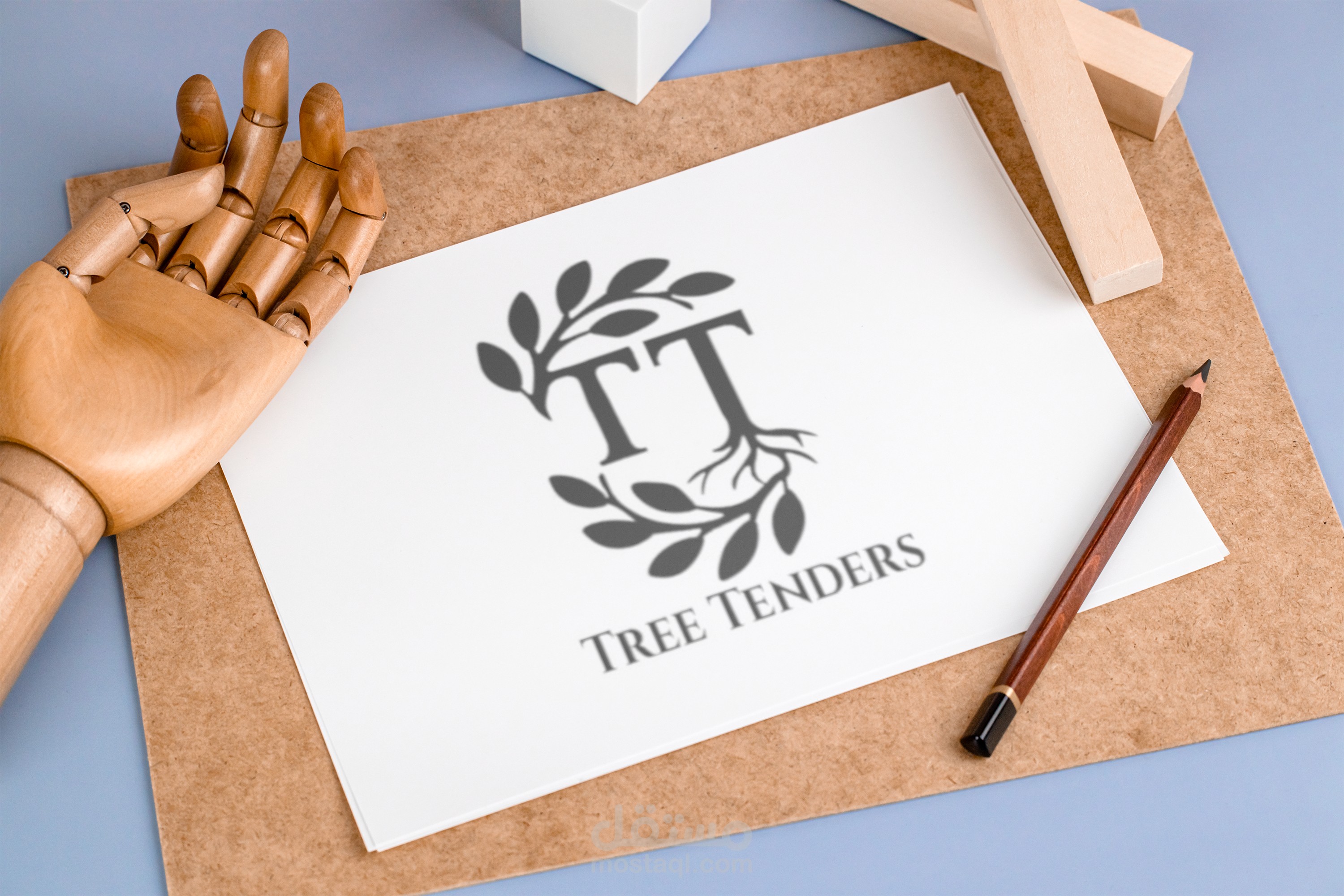 يتميز شعار Tree Tenders بتصميم جريء وأنيق مبني على الحرفين الأوليين (TT)، ليمثل القوة والاستقرار. تم دمج الحرفين بشكل إبداعي مع عناصر طبيعية مثل الفروع والأوراق التي تحيط بالجزء العلوي، لترمز إلى النمو والحيوية، بينما تمتد الجذور من القاعدة لتعكس الأساس، والرعاية، والاستدامة.