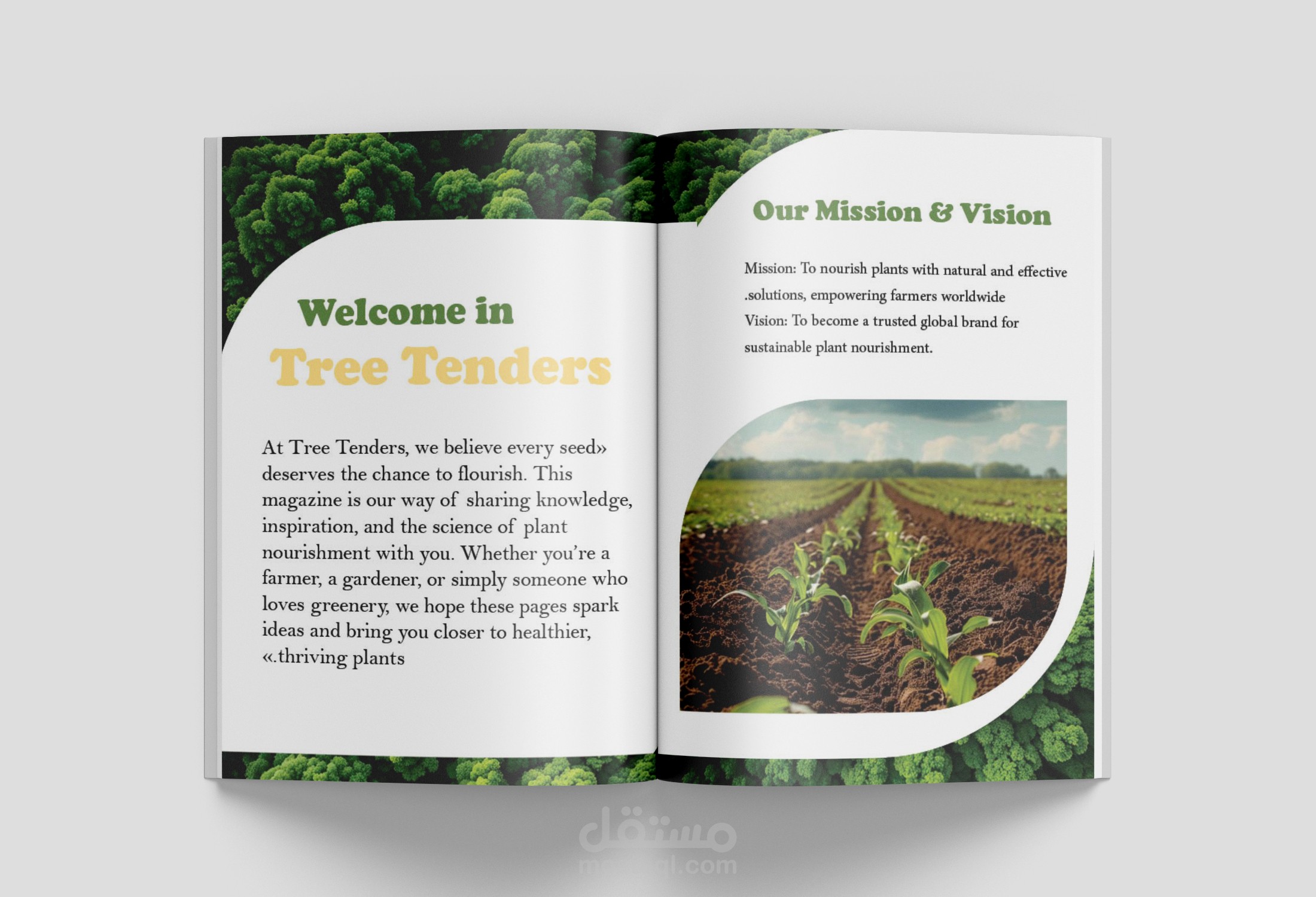 لوحة الألوان الخضراء تمنح إحساسًا بالانتعاش والحياة والانسجام البيئي، أما الطباعة النظيفة فتؤكد على الاحترافية والثقة.