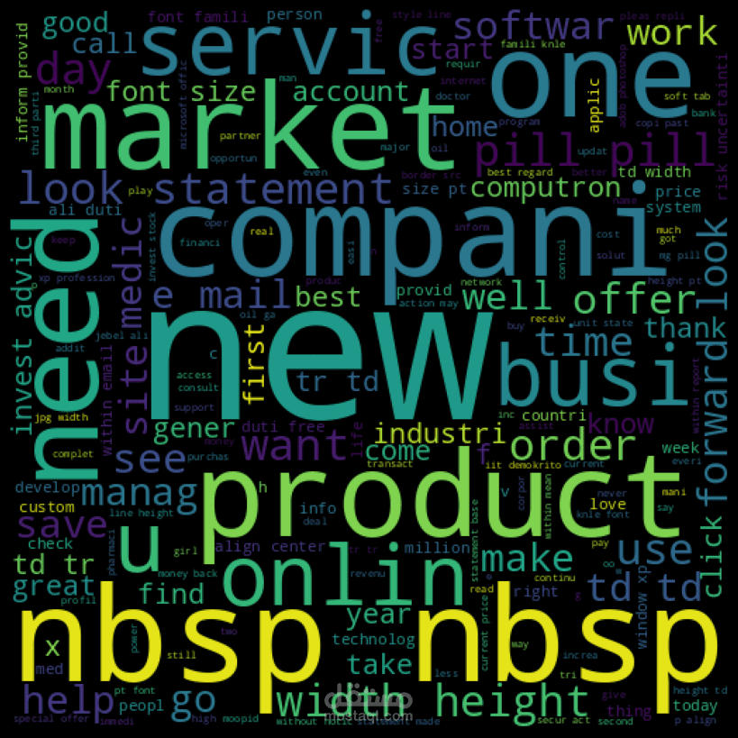 تجهيز النصوص لتصبح قابلة للاستخدام في خوارزميات التعلم الآلي بحيث يسهل على النموذج التمييز بين الرسائل العشوائية (Spam) والرسائل السليمة (Ham).