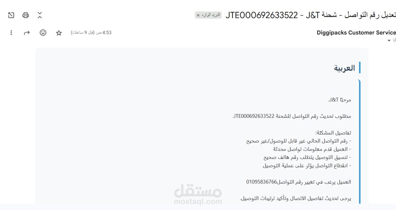 الرد على استفسارات الشحن (تتبع الشحنات – مواعيد التسليم – تكلفة الشحن).